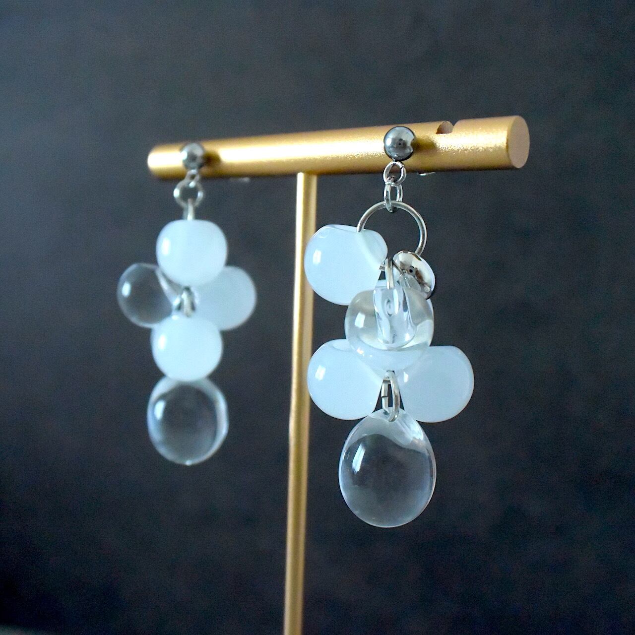 アクリルビーズを使った、ボリューム感のあるバブルが涼し気なシャボン玉風のピアスです。