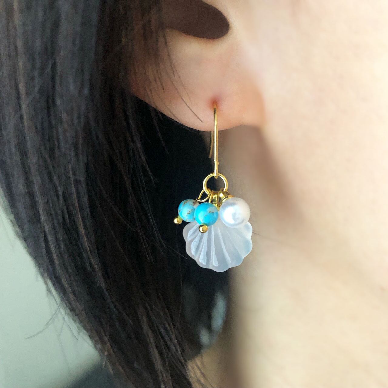 アゲートのシェルとジャスパーターコイズのピアス サージカルステンレス