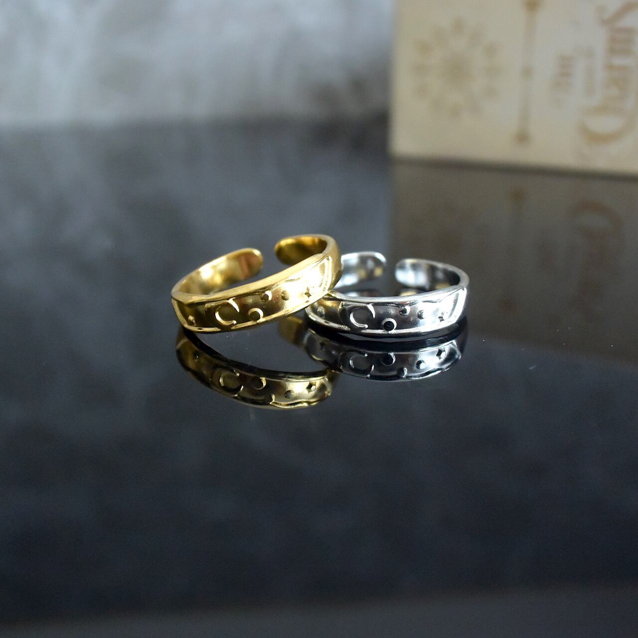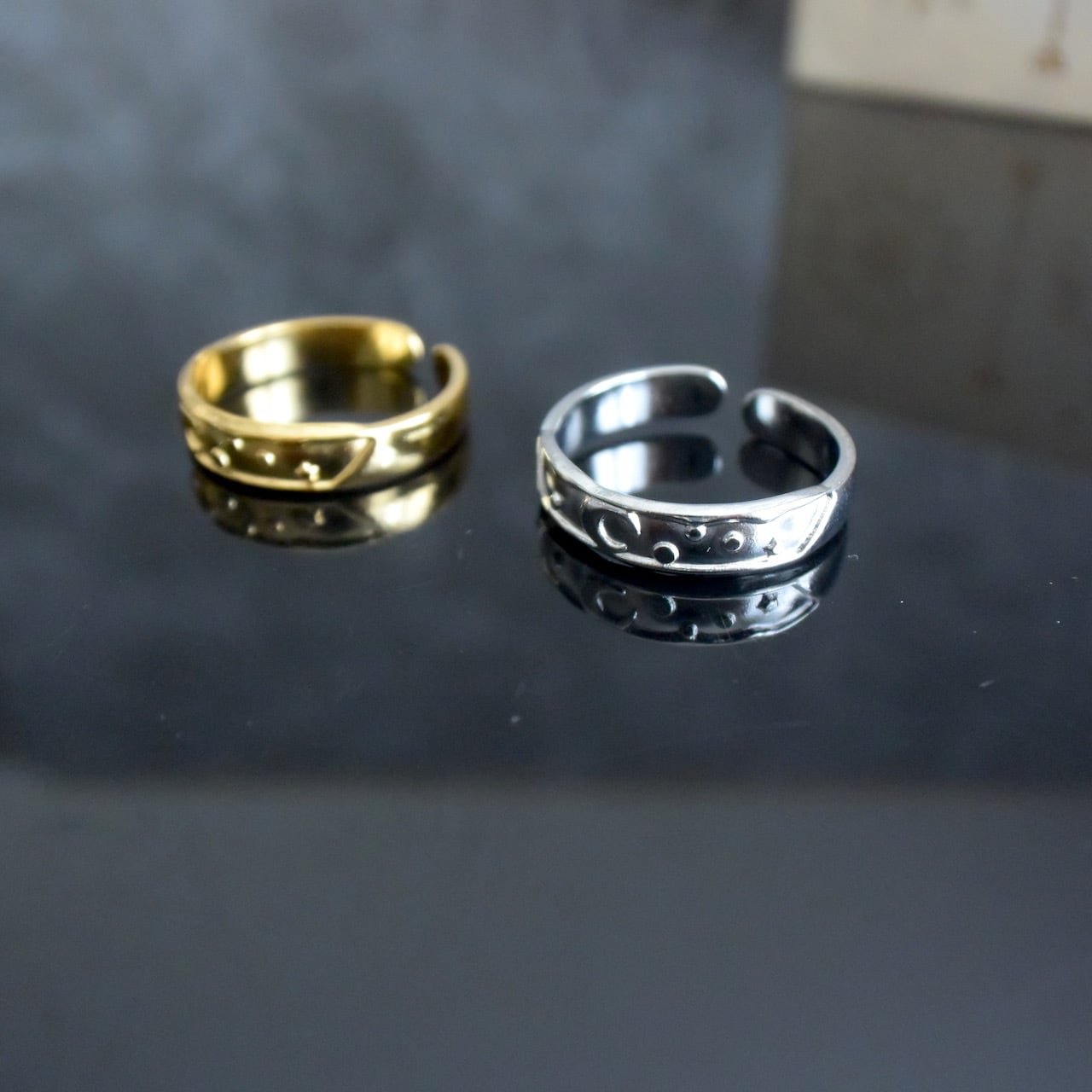 三日月と星空のステンレス製オープンリング ゴールド/シルバー