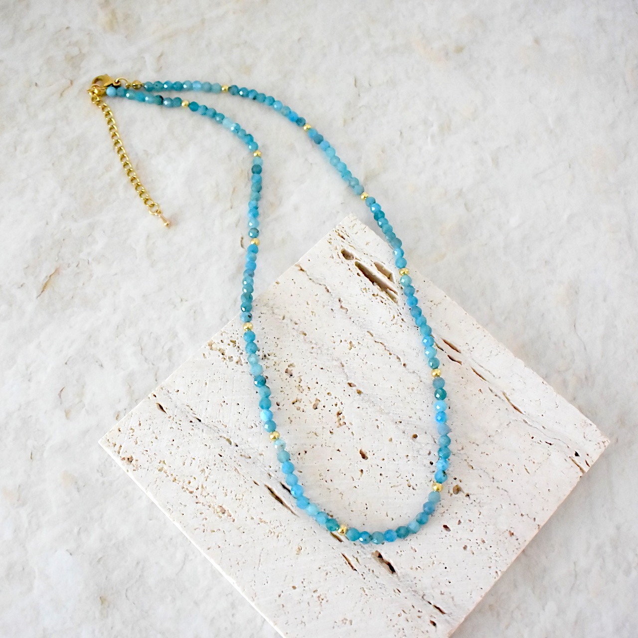 ブルーアパタイトのファセットカットビーズネックレス ゴールド