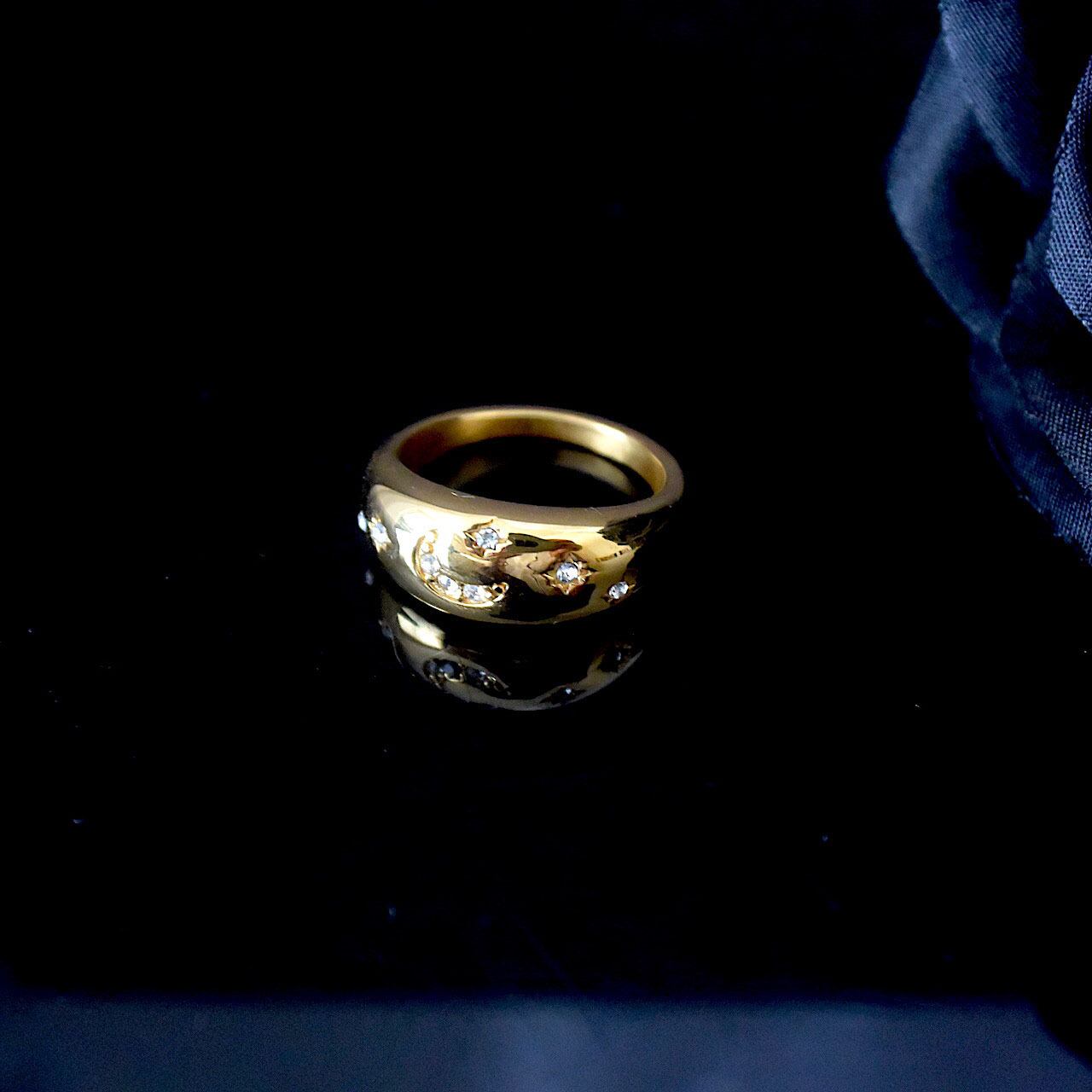 キュービックジルコニアの三日月を中心に、星が散りばめられた夜空のようなデザインのリング。