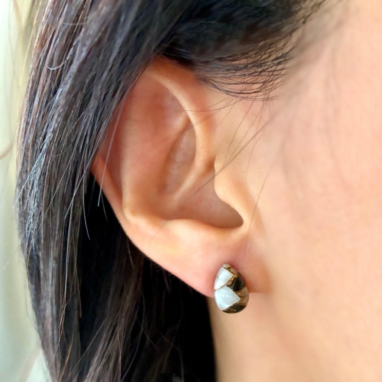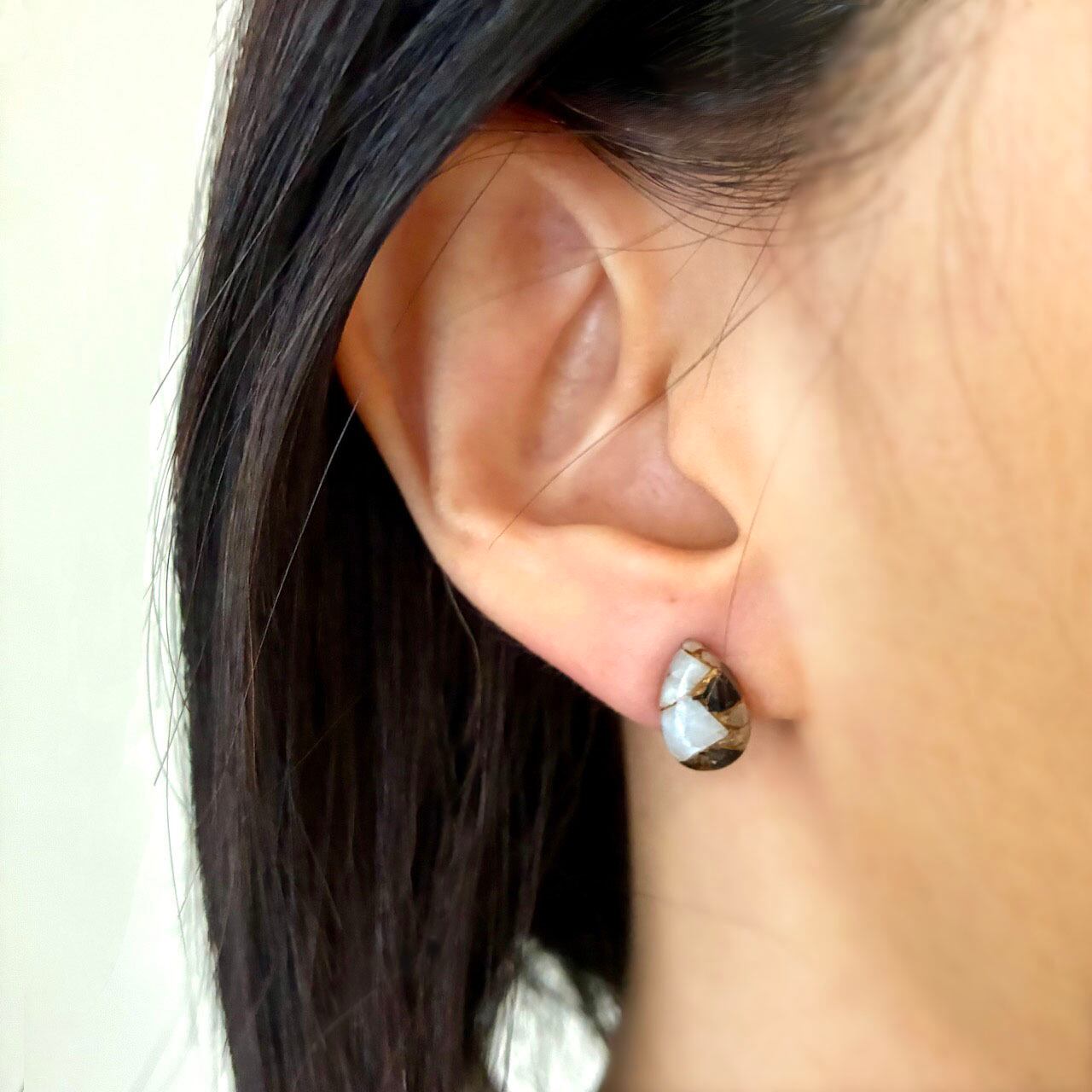 個性的な香りのするしずく型のオーバル型のコッパーカルサイトオブシディアンを、シンプルな一粒ピアスにしました。