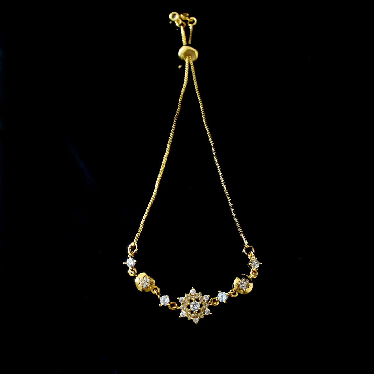 キラキラとした雪の結晶のモチーフを連ねた、ゴージャスな雰囲気のブレスレットです。