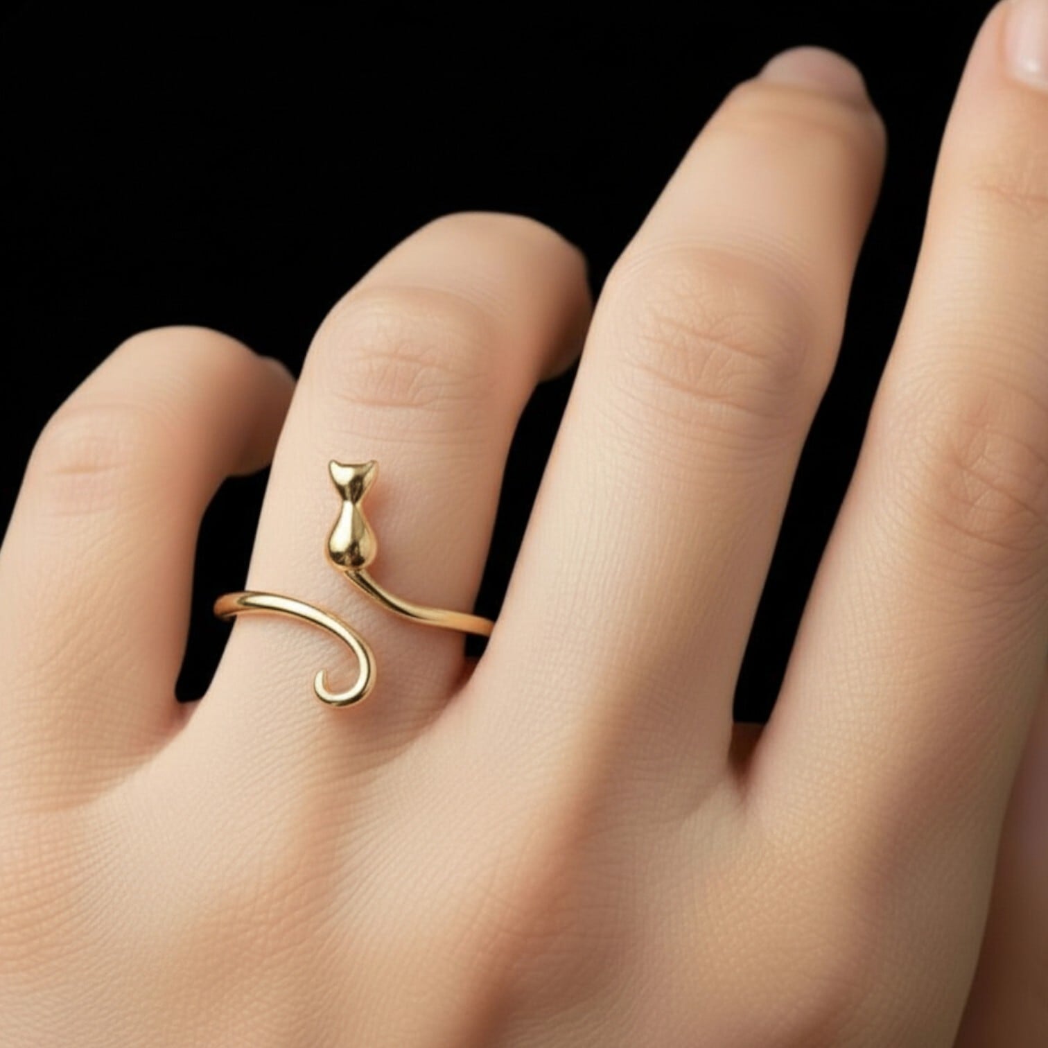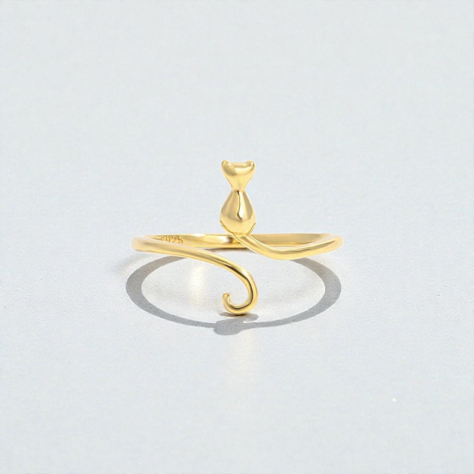 スターリングシルバー(SV925)の子猫がしっぽを振っているような華奢で可愛らしいリング。