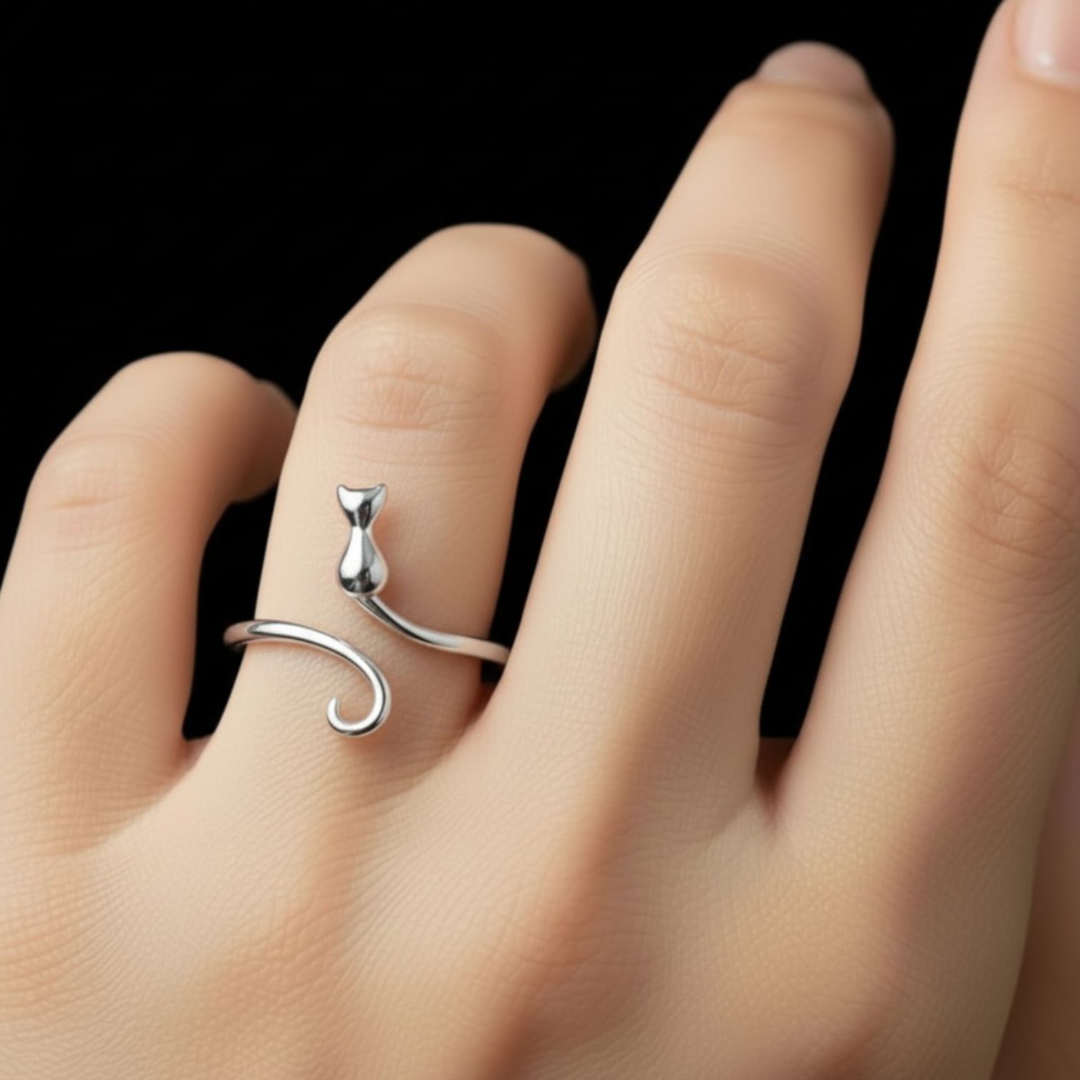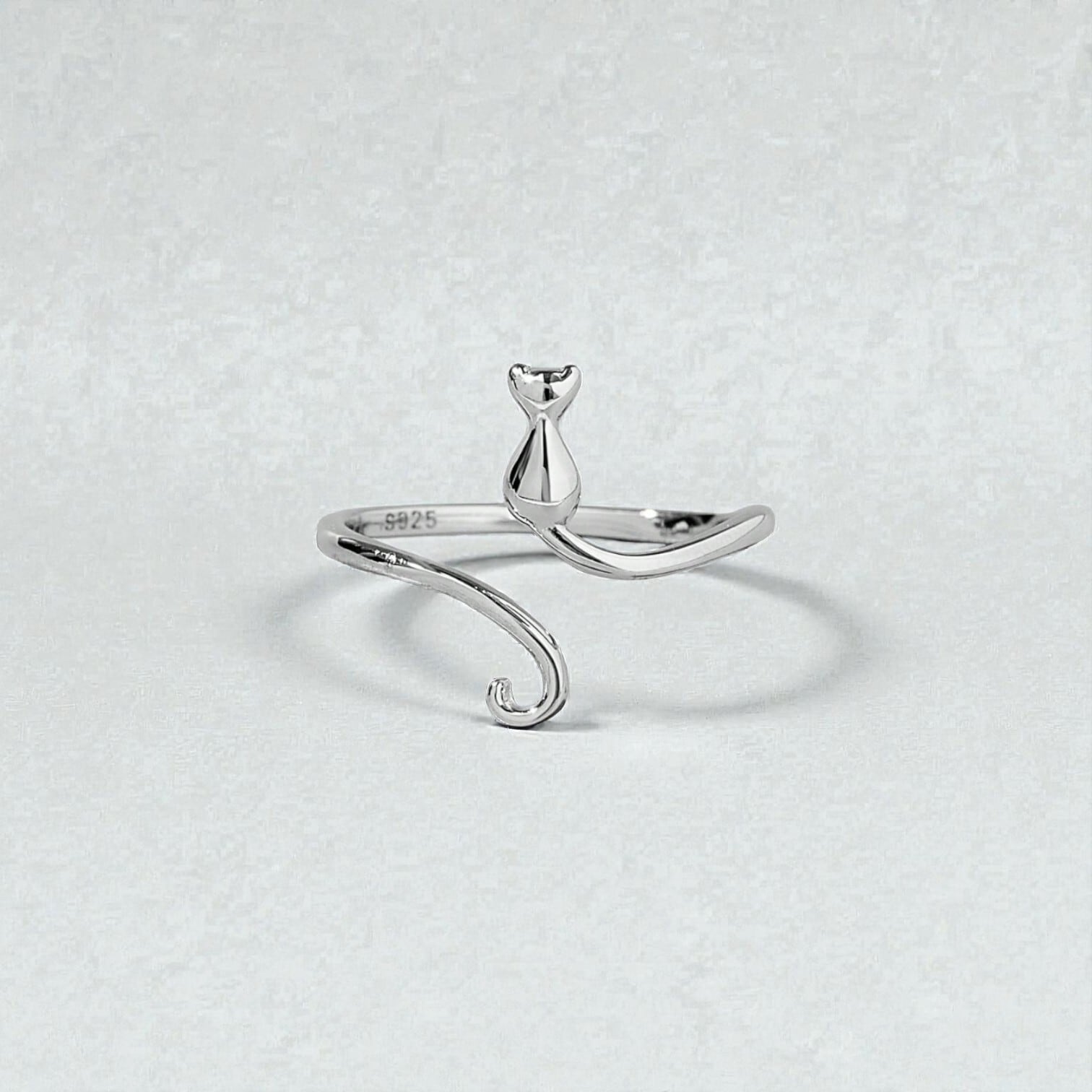 スターリングシルバー(SV925)の子猫がしっぽを振っているような華奢で可愛らしいリング。