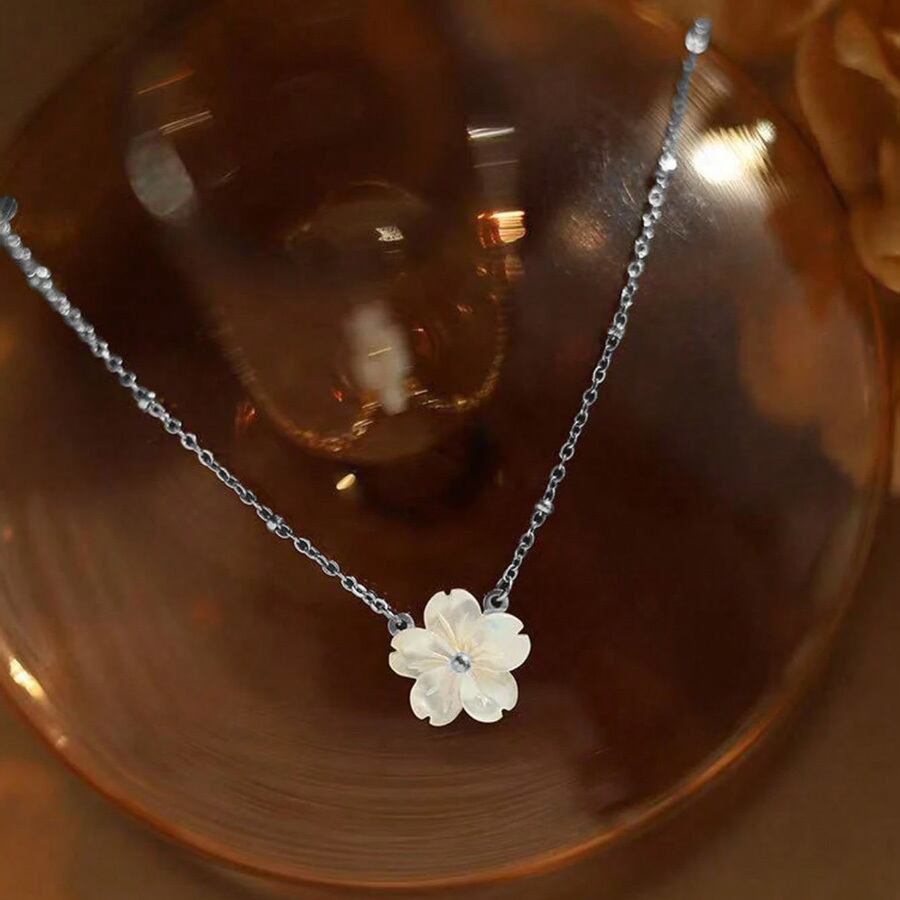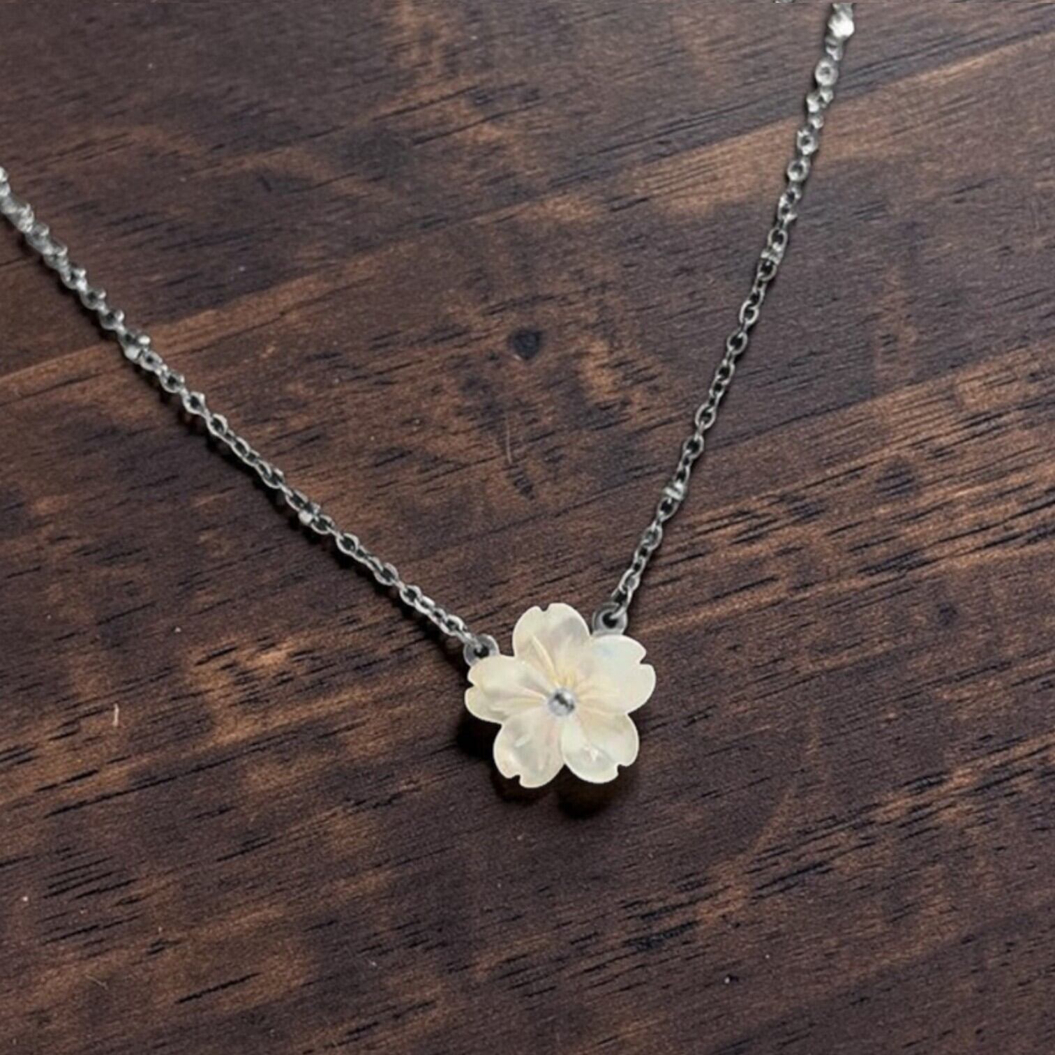 ホワイトシェルの桜ネックレス ステンレスチェーン シルバー