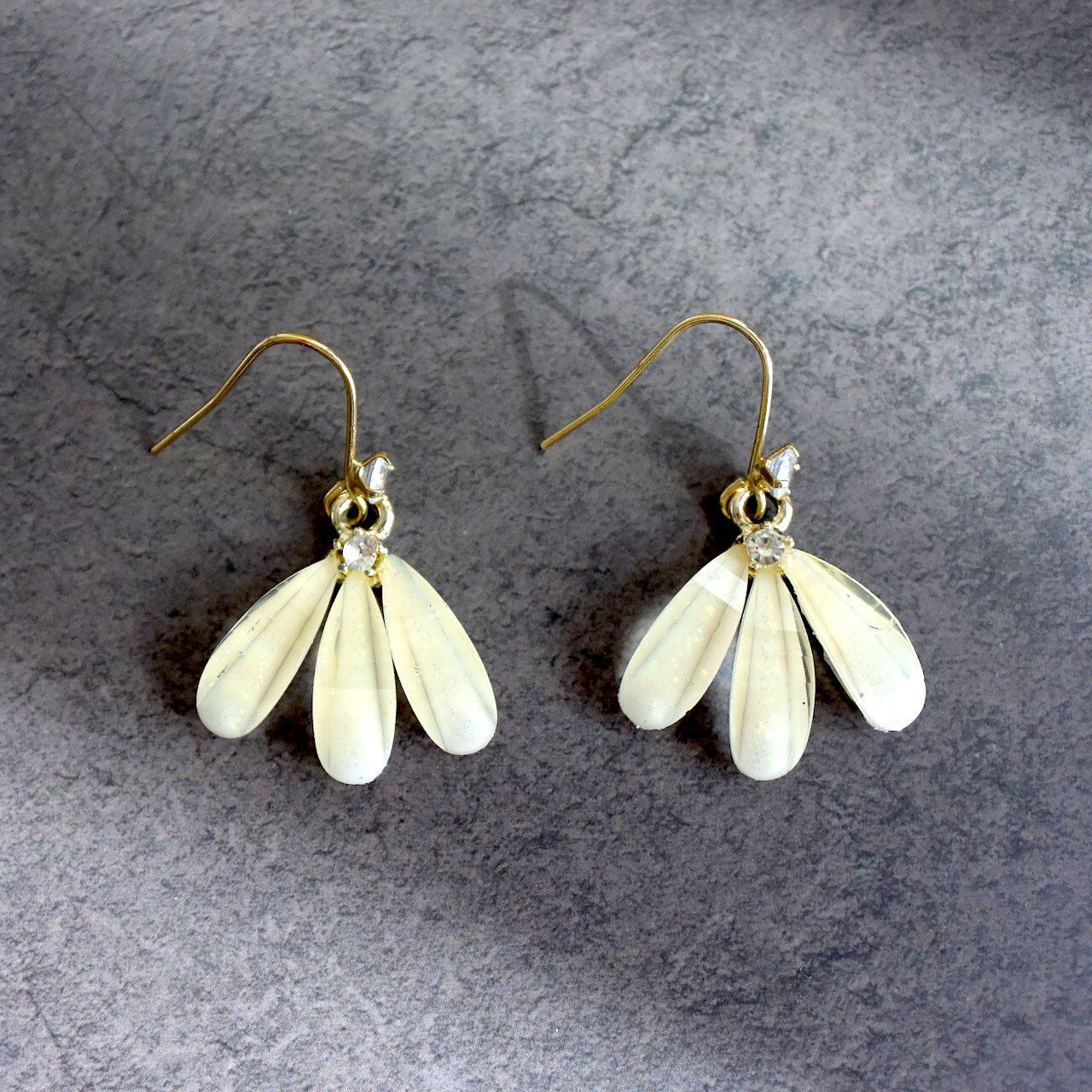クリーム色の花びらが広がった、上品なモチーフのピアス。