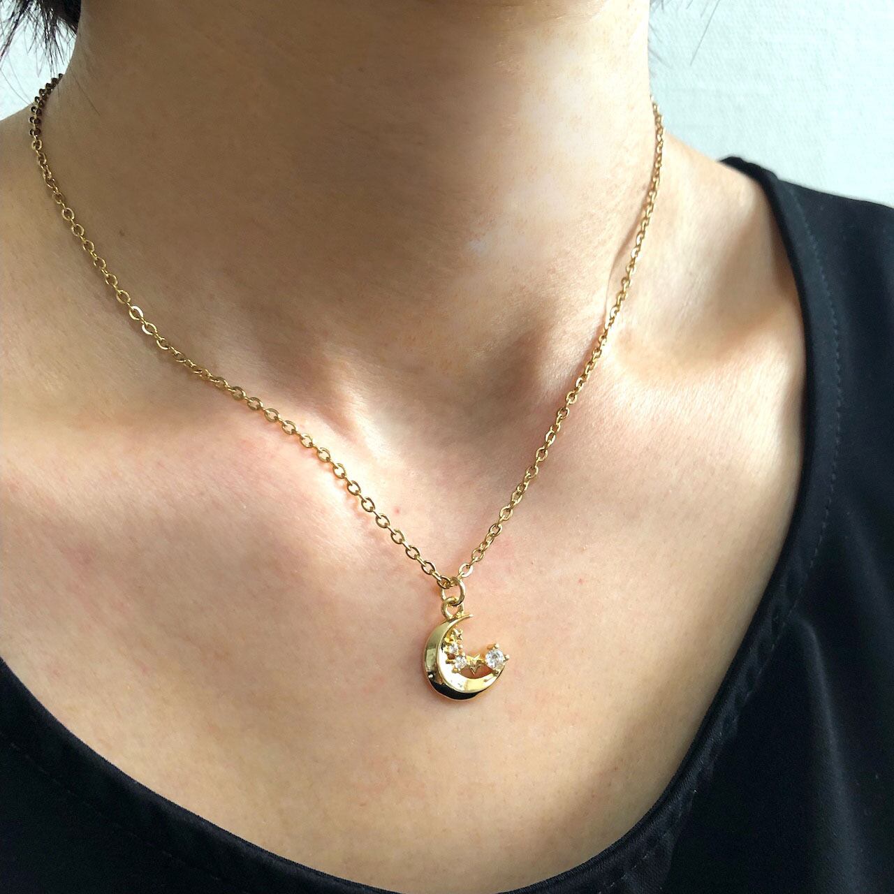 お星さまを乗せた三日月のネックレス ステンレスチェーン ゴールド ハンドメイド