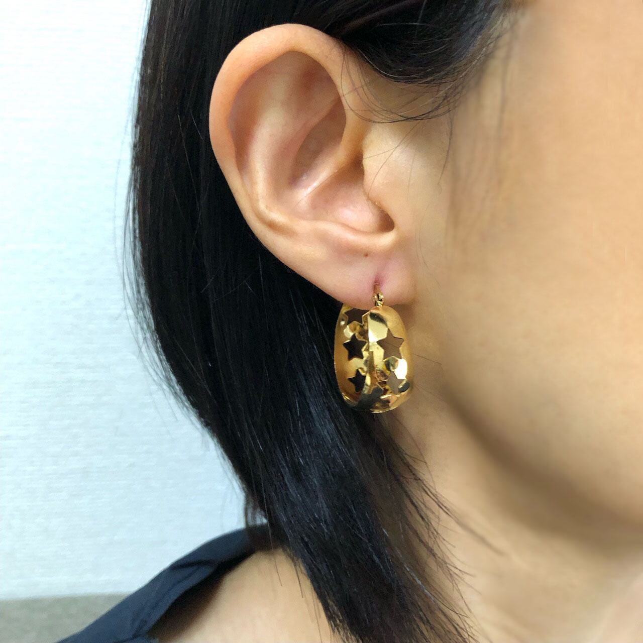 大ぶりのステンレス製のフープに、大きな星がくり抜かれたポップなピアスです。