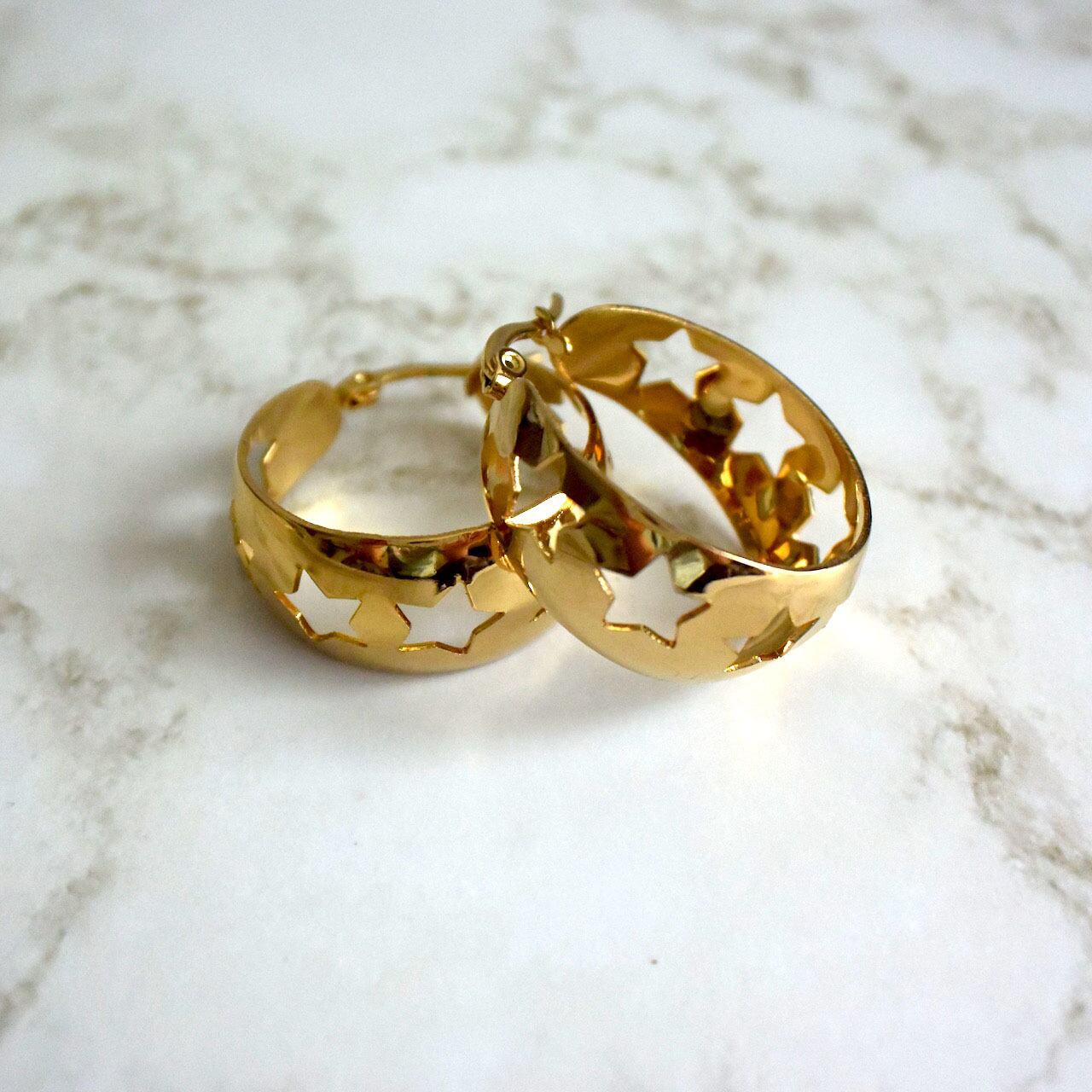 ステンレス製 星型くり抜き大ぶりフープピアス ゴールド