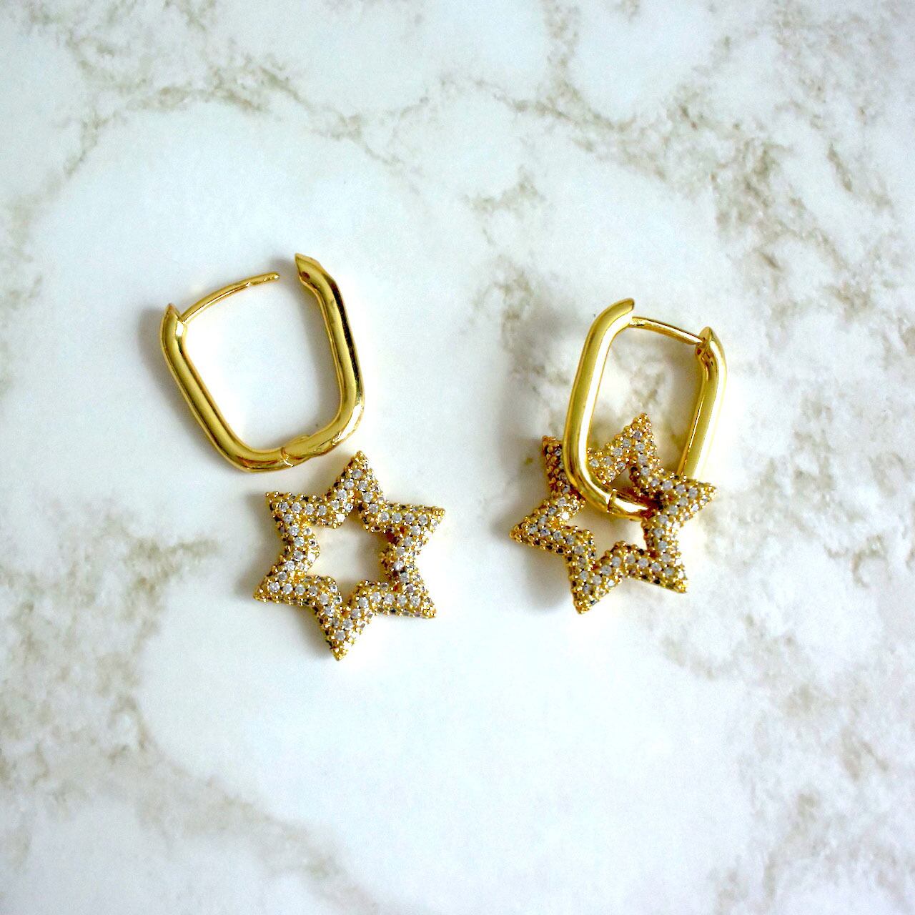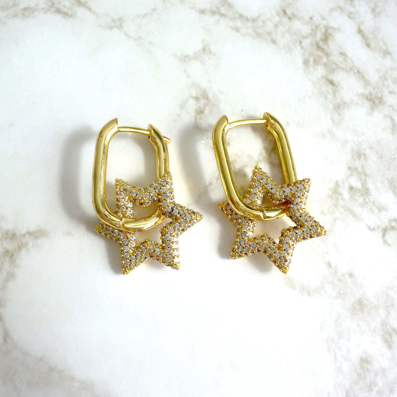 【Noël】マイクロキュービックジルコニアのスターハギーフープピアス ゴールド
