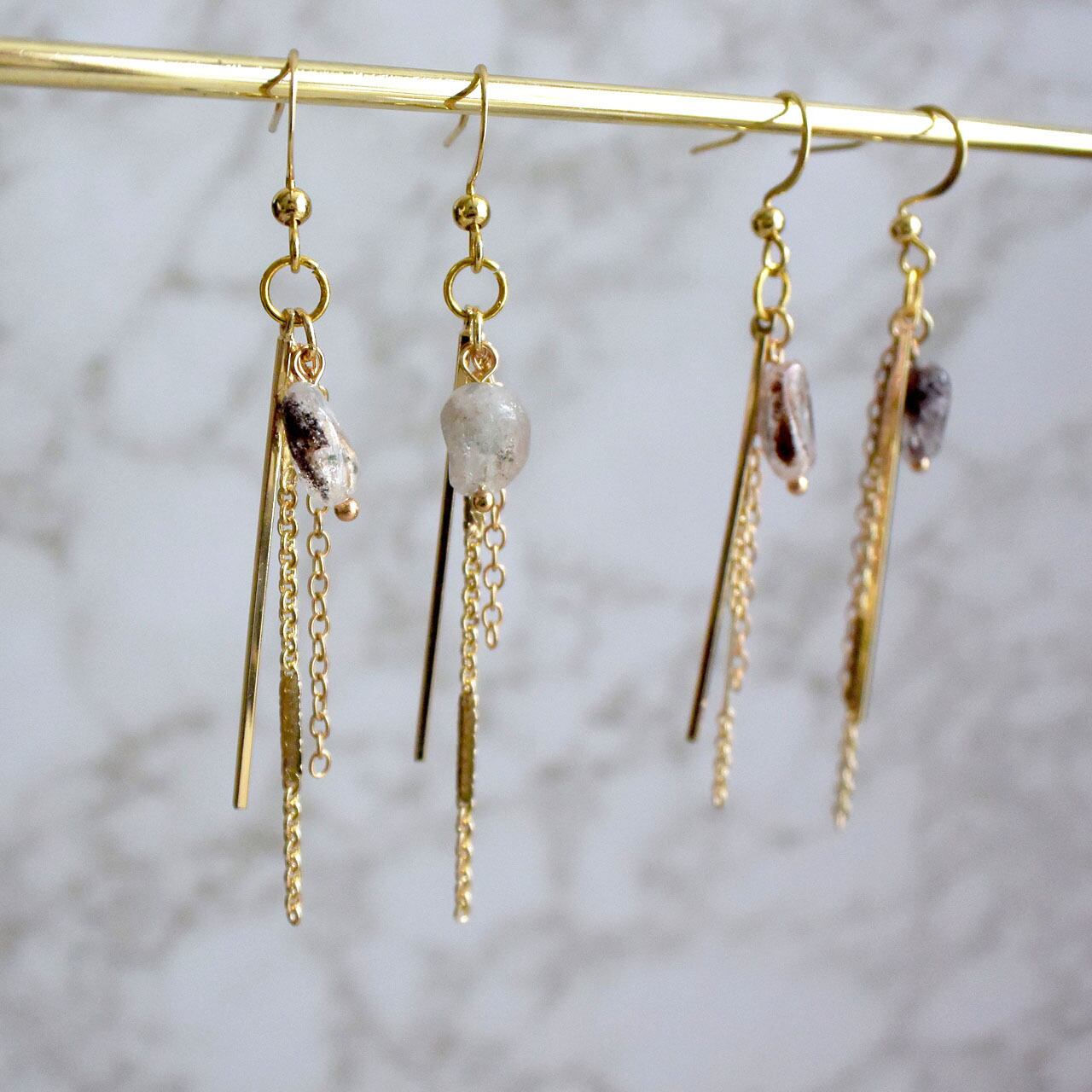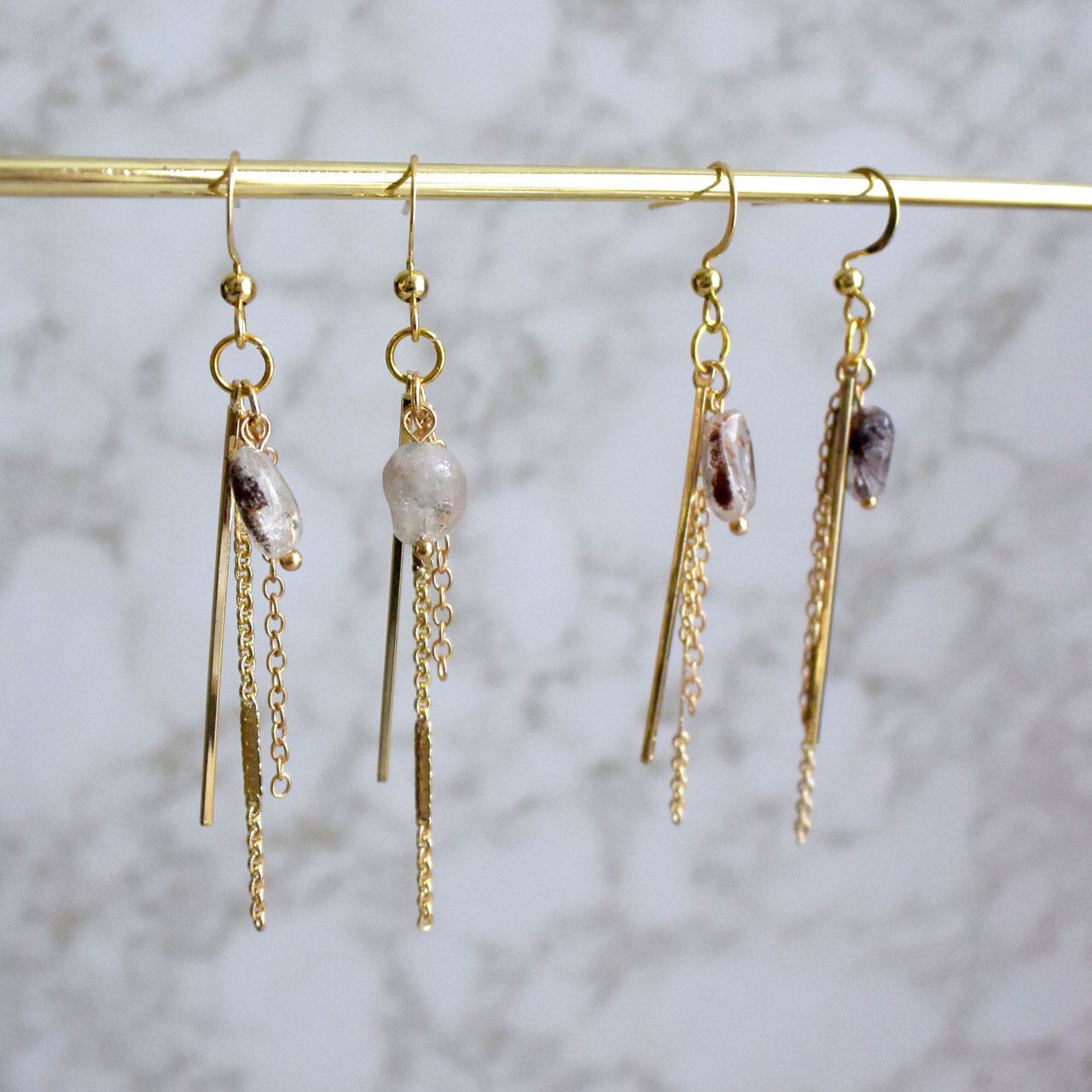 ファントムクォーツのチェーンフックピアス サージカルステンレス金具 天然石 ゴールド ハンドメイド