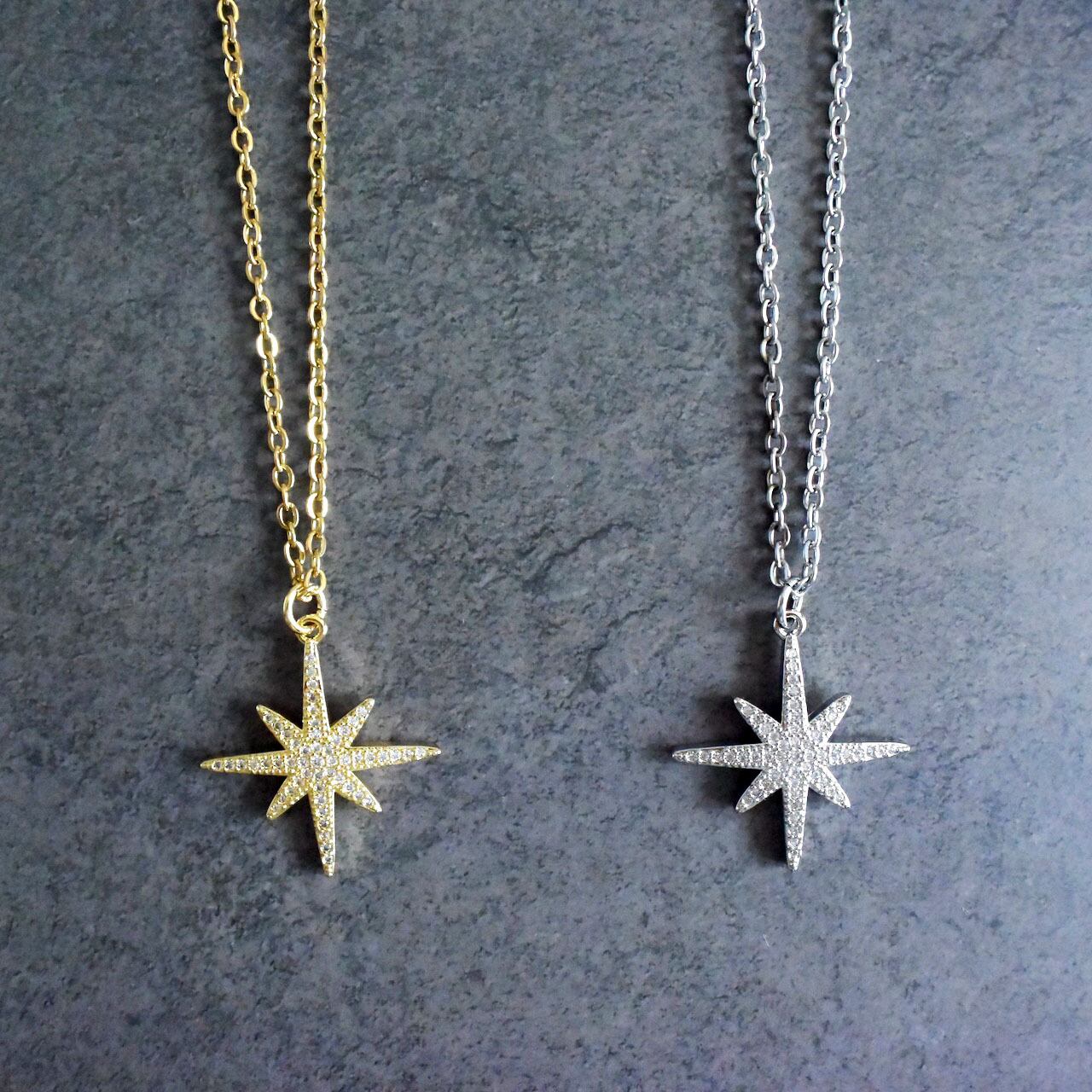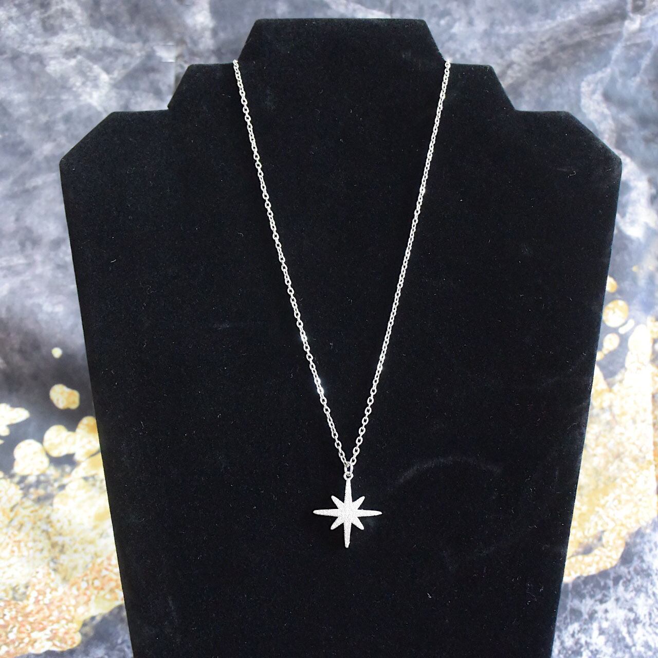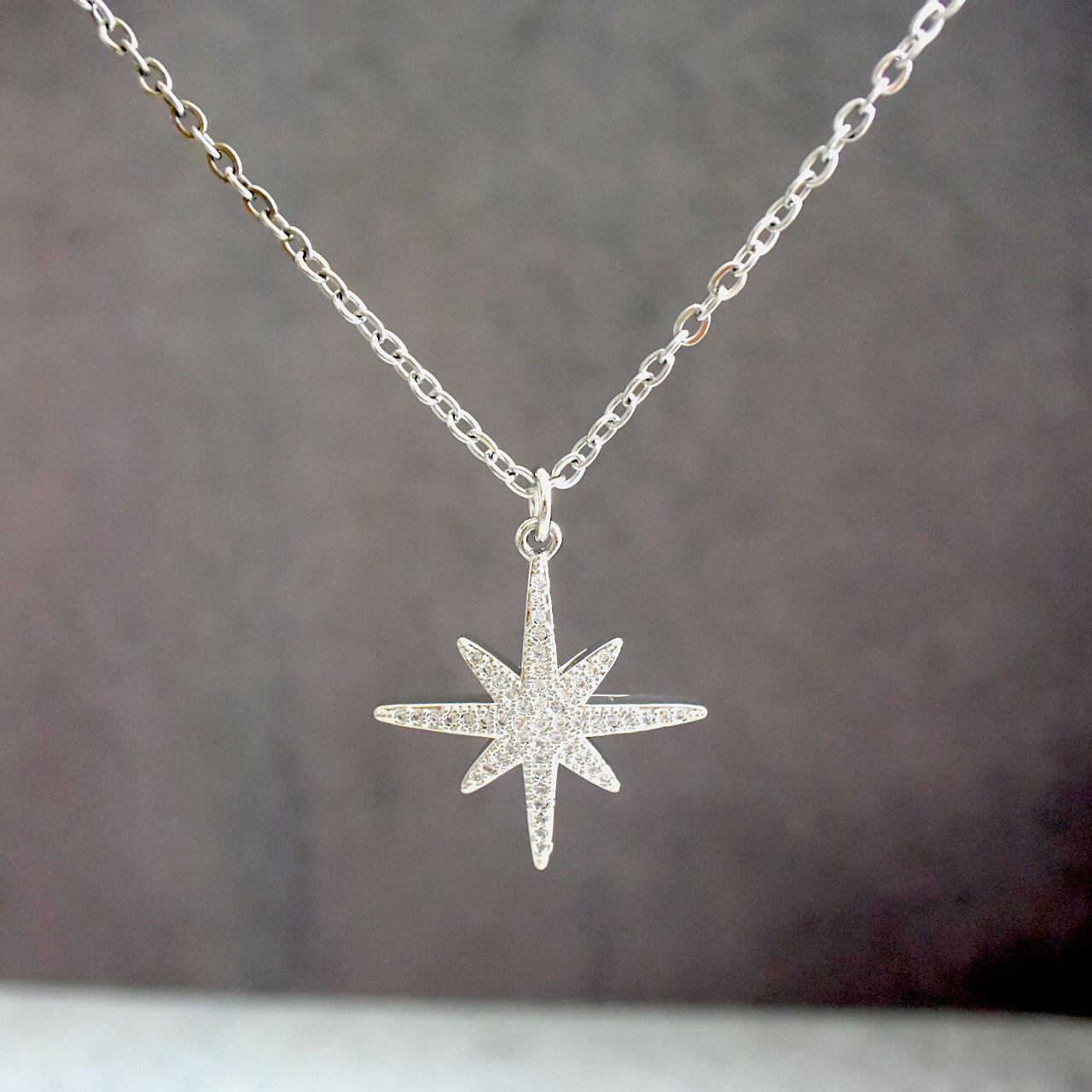 マイクロキュービックジルコニアが散りばめられた、大ぶりの八芒星が、一番星のように煌めく華やかなネックレスです。