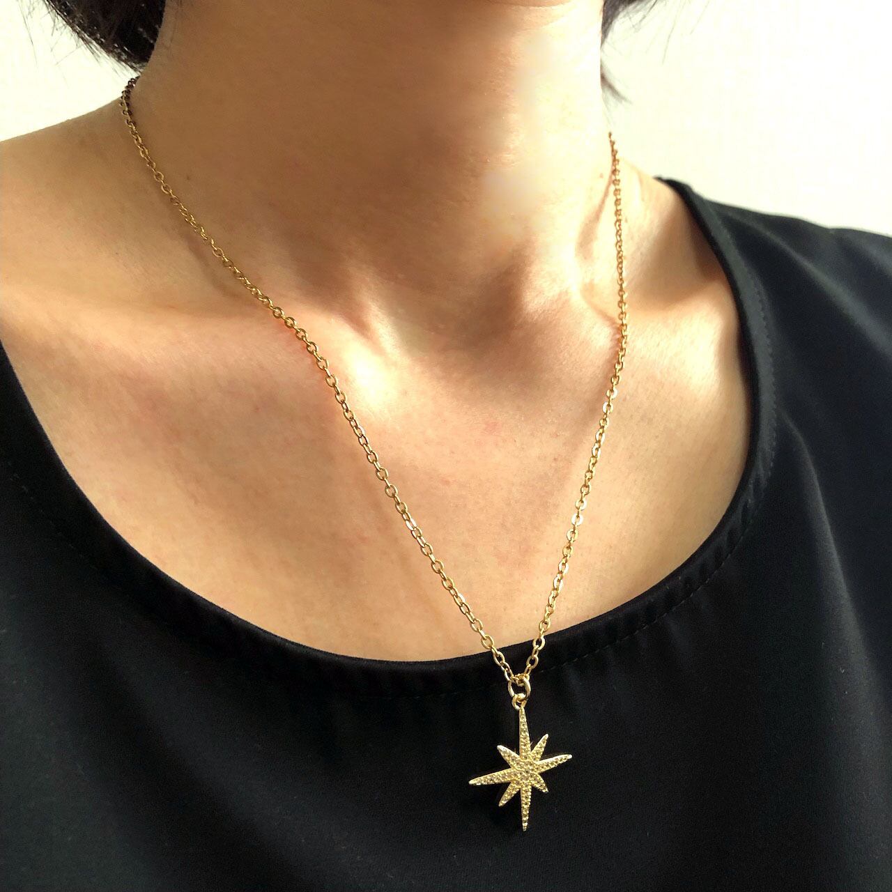 【Noël】一番星のネックレス ステンレスチェーン ゴールド ハンドメイド