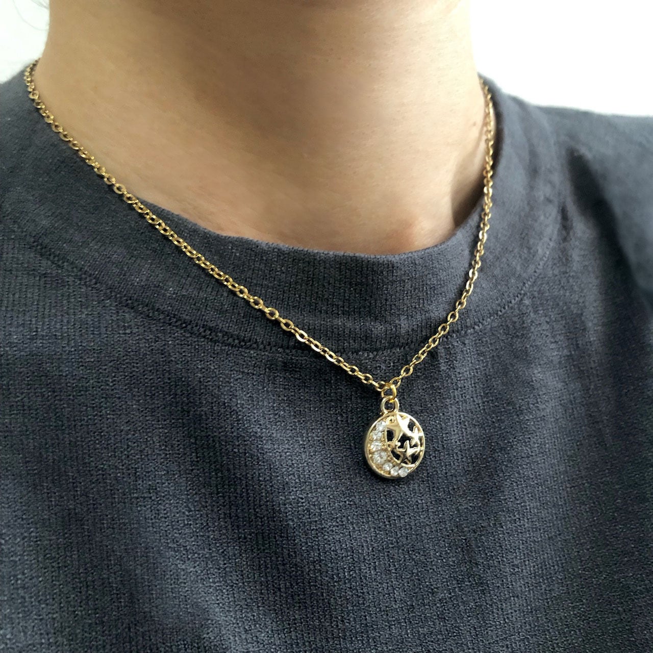 【Noël】nuit スター&ムーンのネックレス ステンレスチェーン ゴールド ハンドメイド