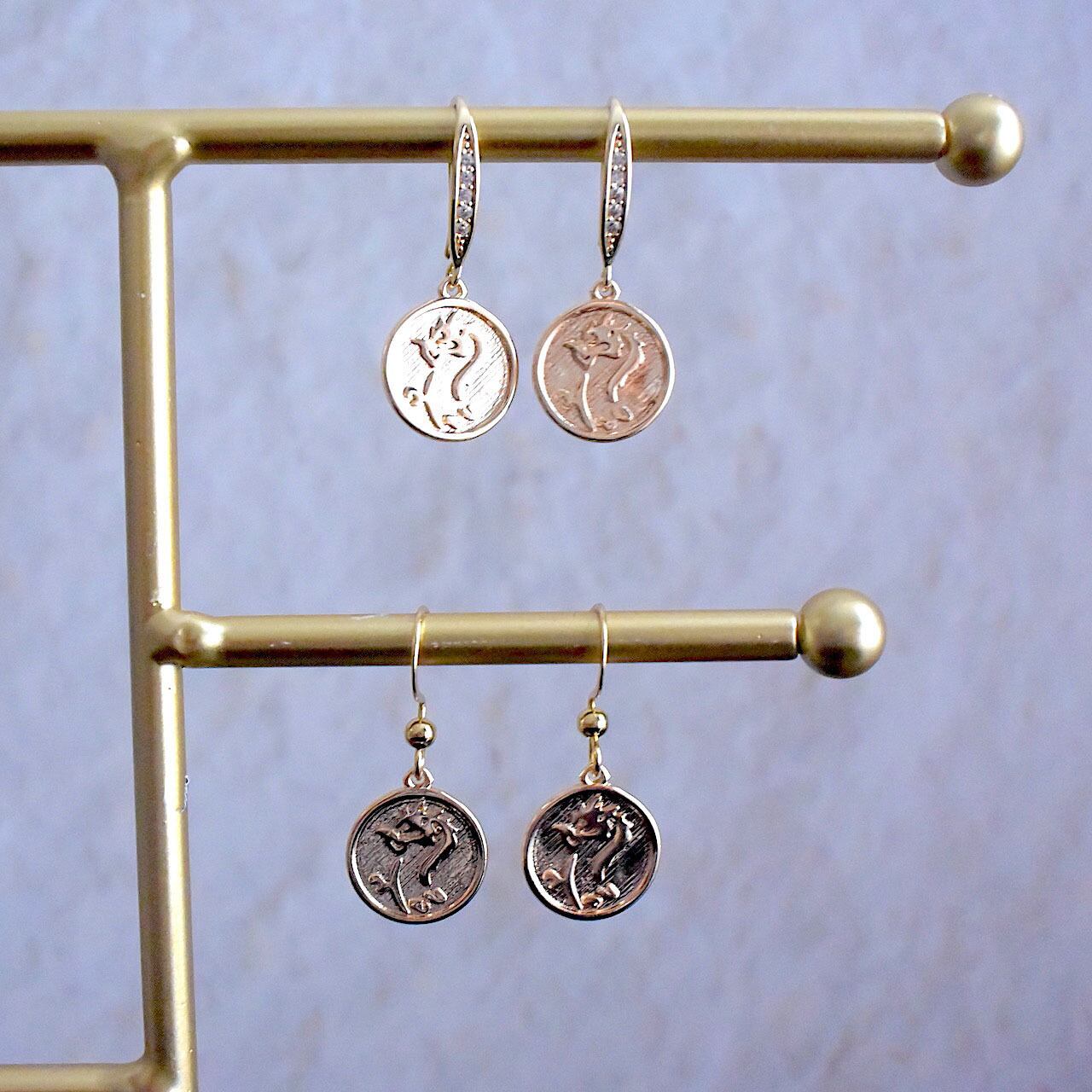 2024干支 辰 「龍舞春風」龍のコインとジルコニアフックピアス ゴールド ハンドメイド