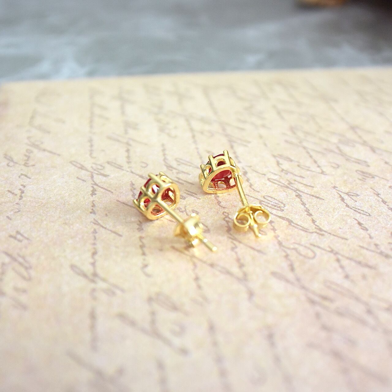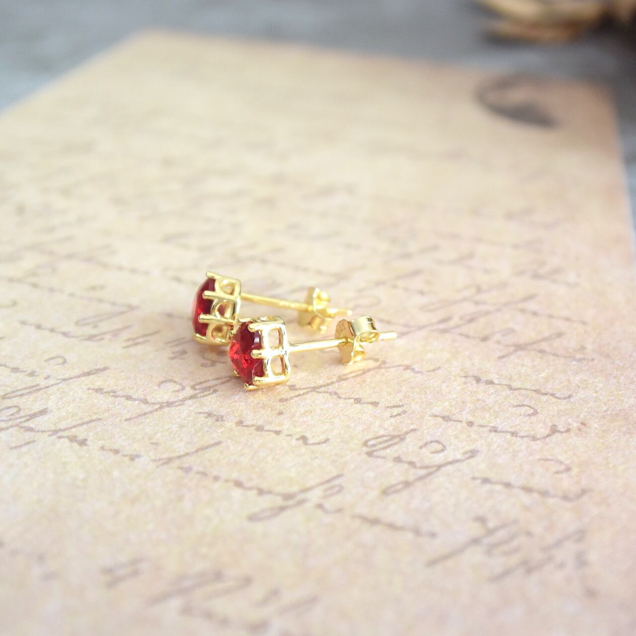 真っ赤なハート型のキュービックジルコニアを、ゴールドで包んだミニマムなピアスです。