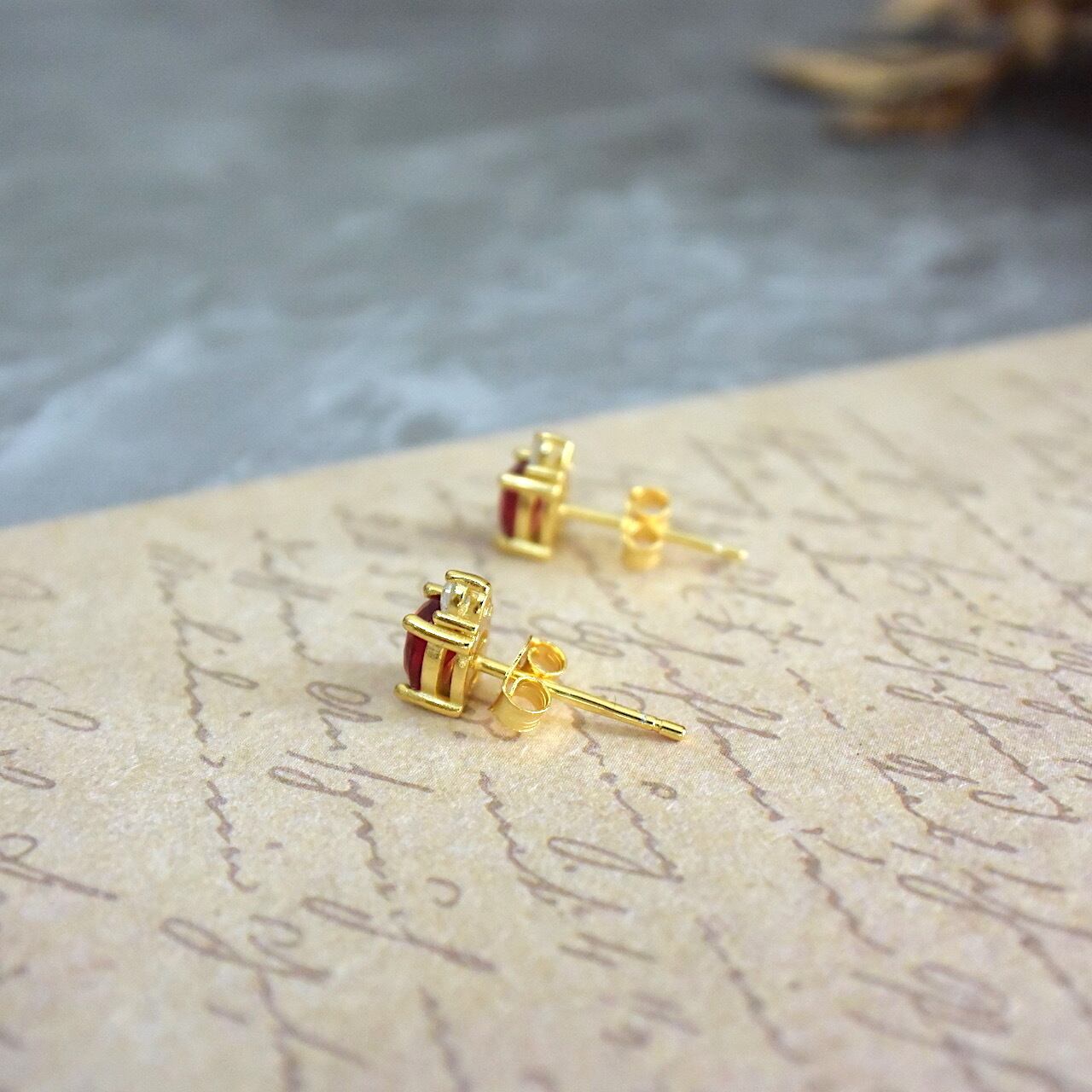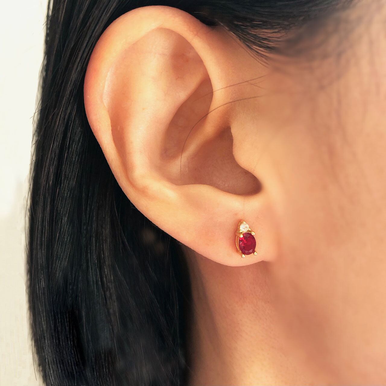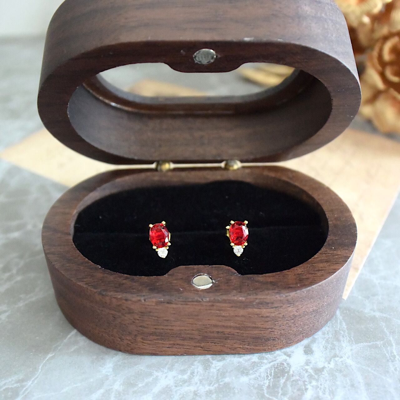 真っ赤な宝石のようなジルコニアと透明な一粒石を組み合わせた、ミニマムなピアスです。
