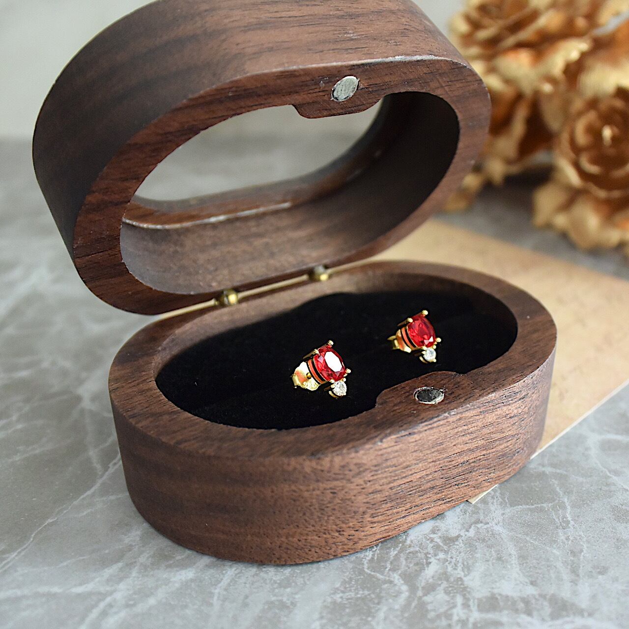 Silver925 真っ赤なオーバル型のジルコニアピアス レッド×ゴールド