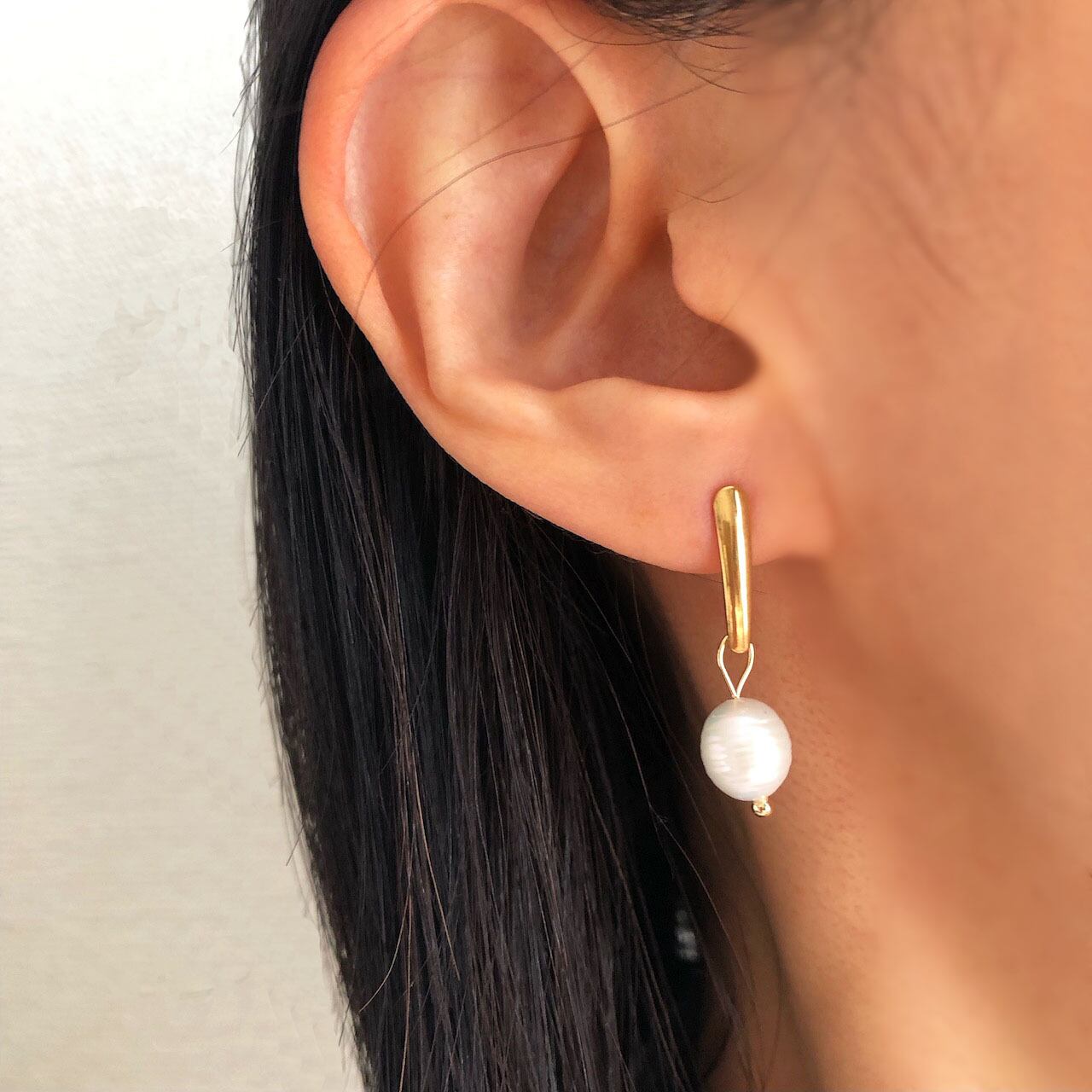 ステンレスバーとバロックパールのシンプルピアス ゴールド