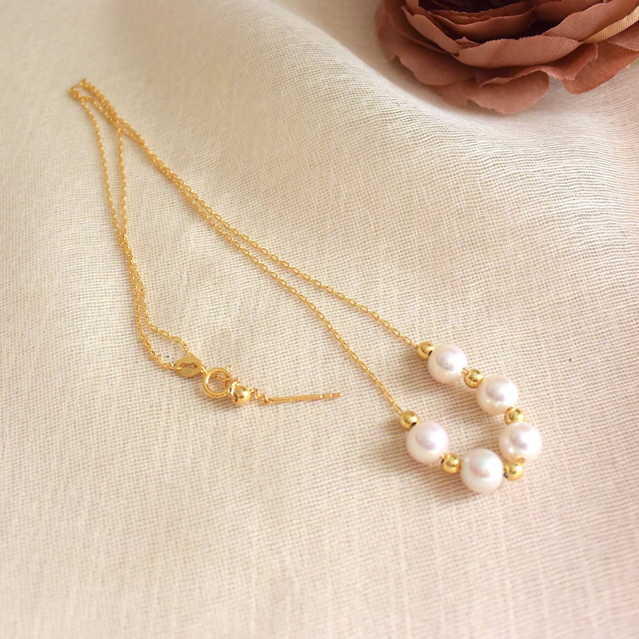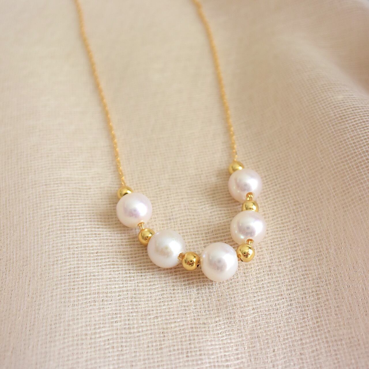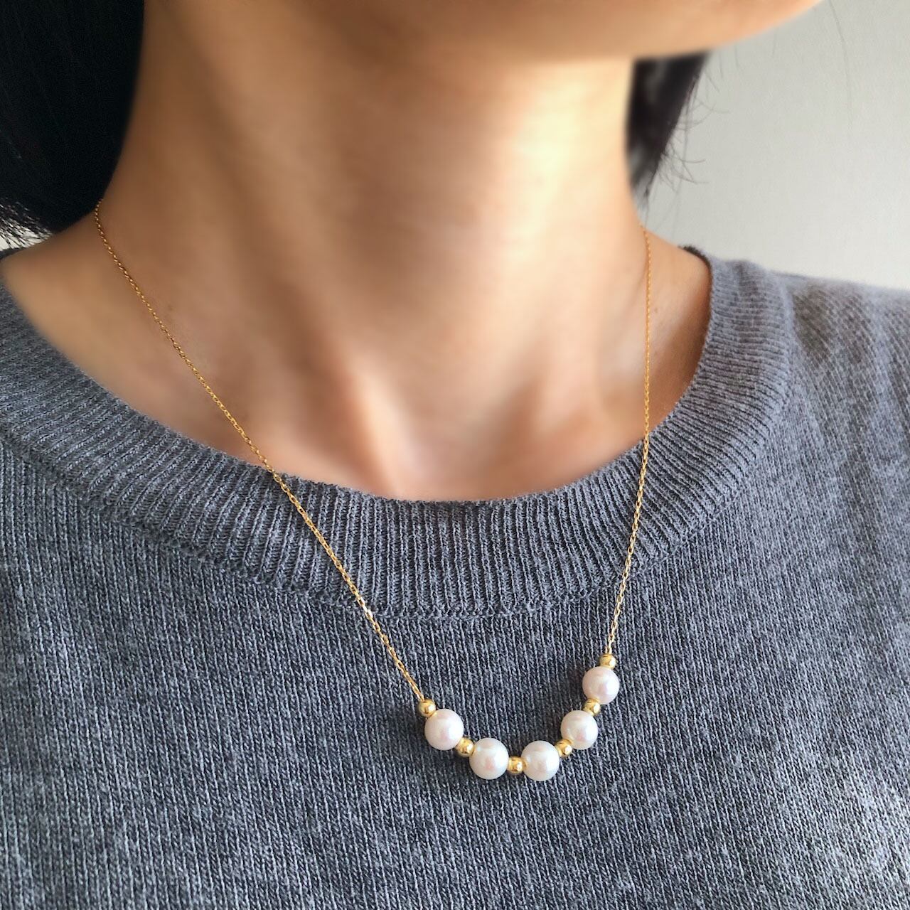 6mm玉のあこやパール5粒とゴールドビーズを組み合わせた、、シンプルながらも華やかで上品な雰囲気のネックレスです。