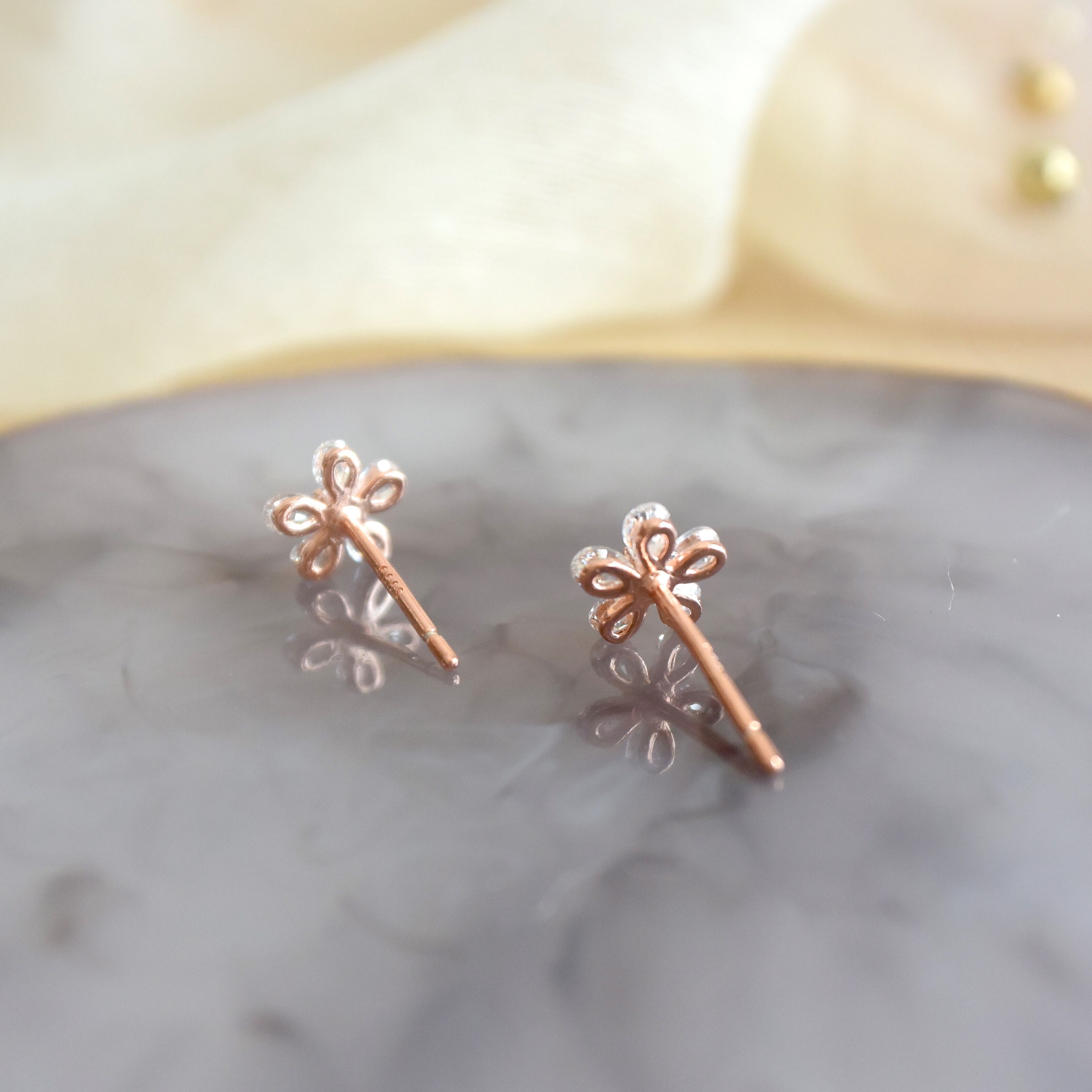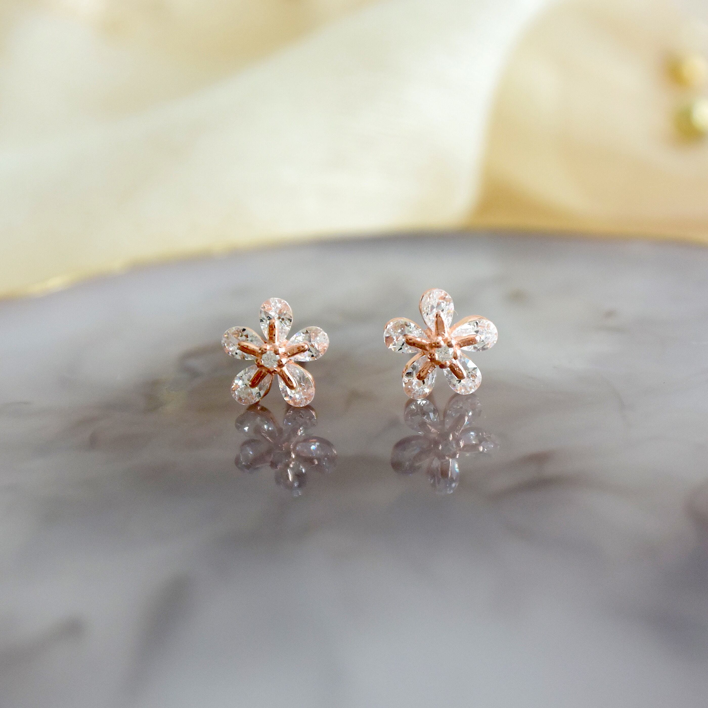 Silver925 ジルコニア桜の小粒ピアス ローズゴールド