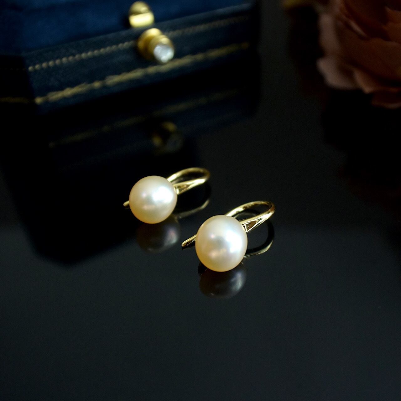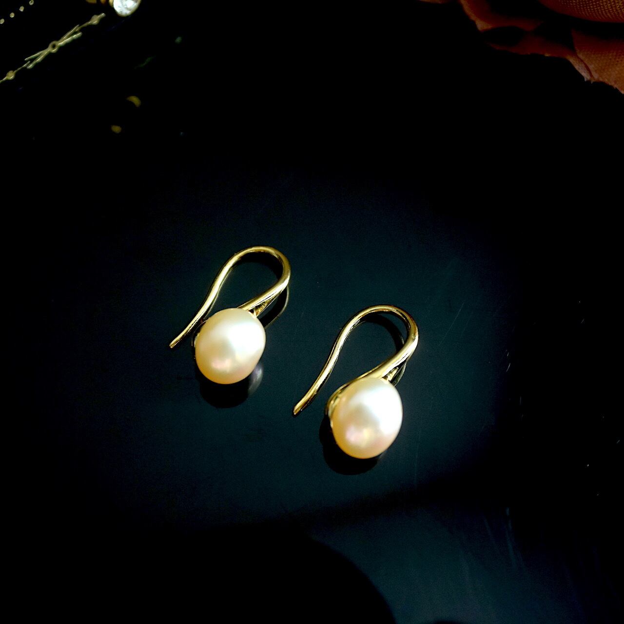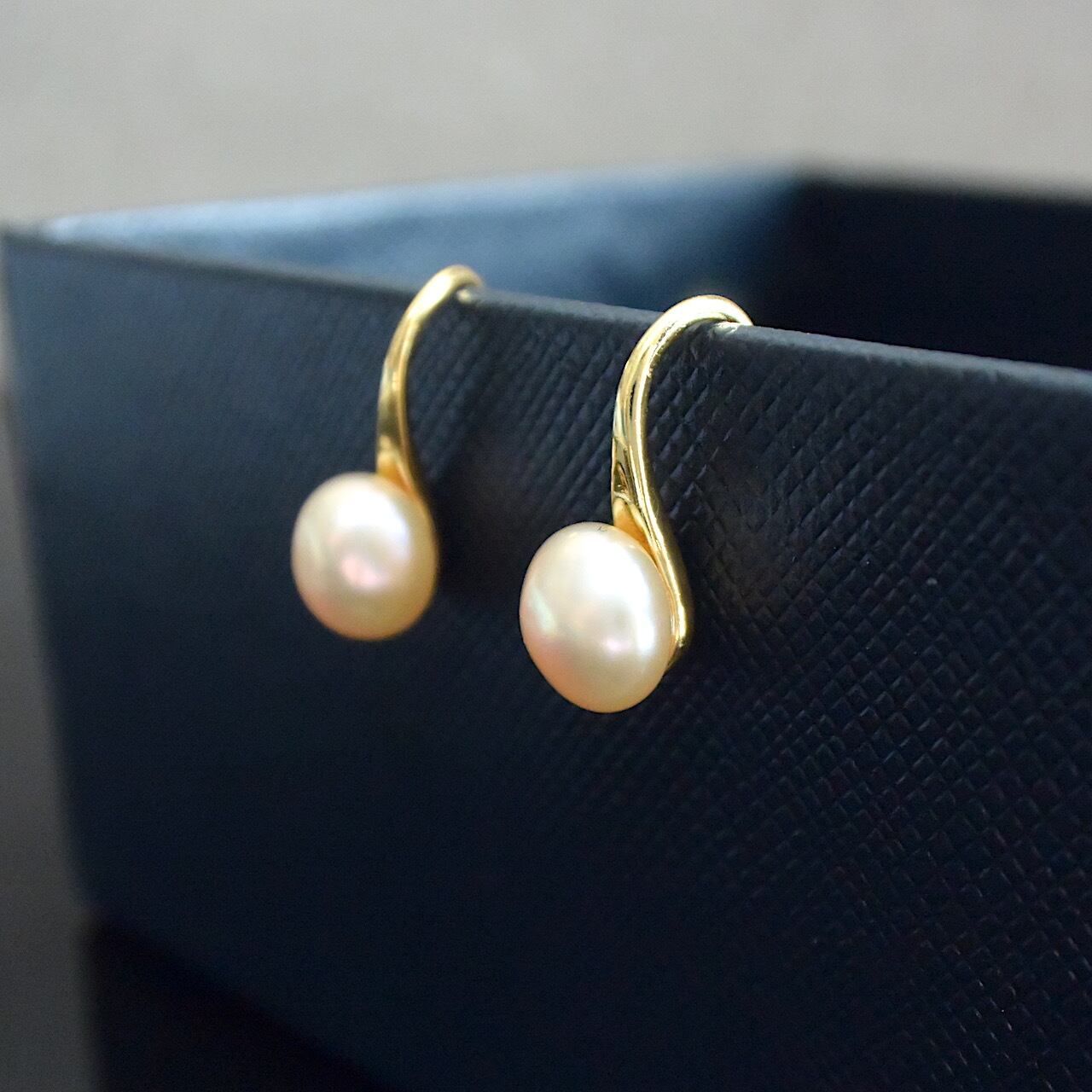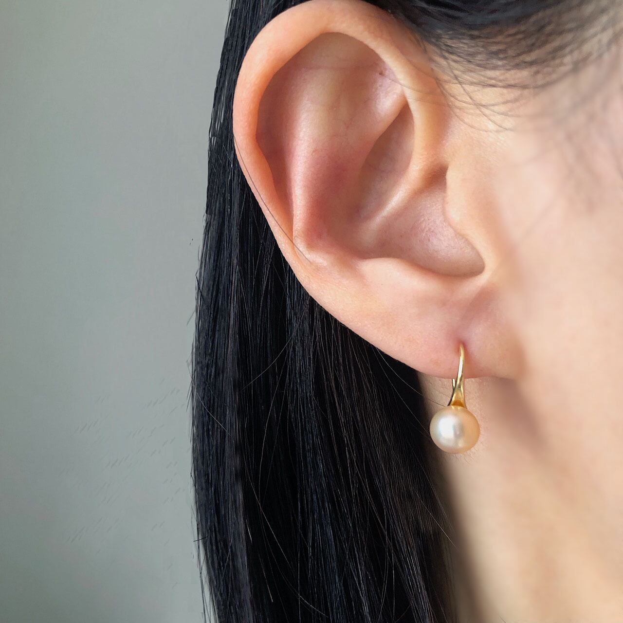 ボタン型の淡水パールをフックピアスにした、シンプルなピアスです。
