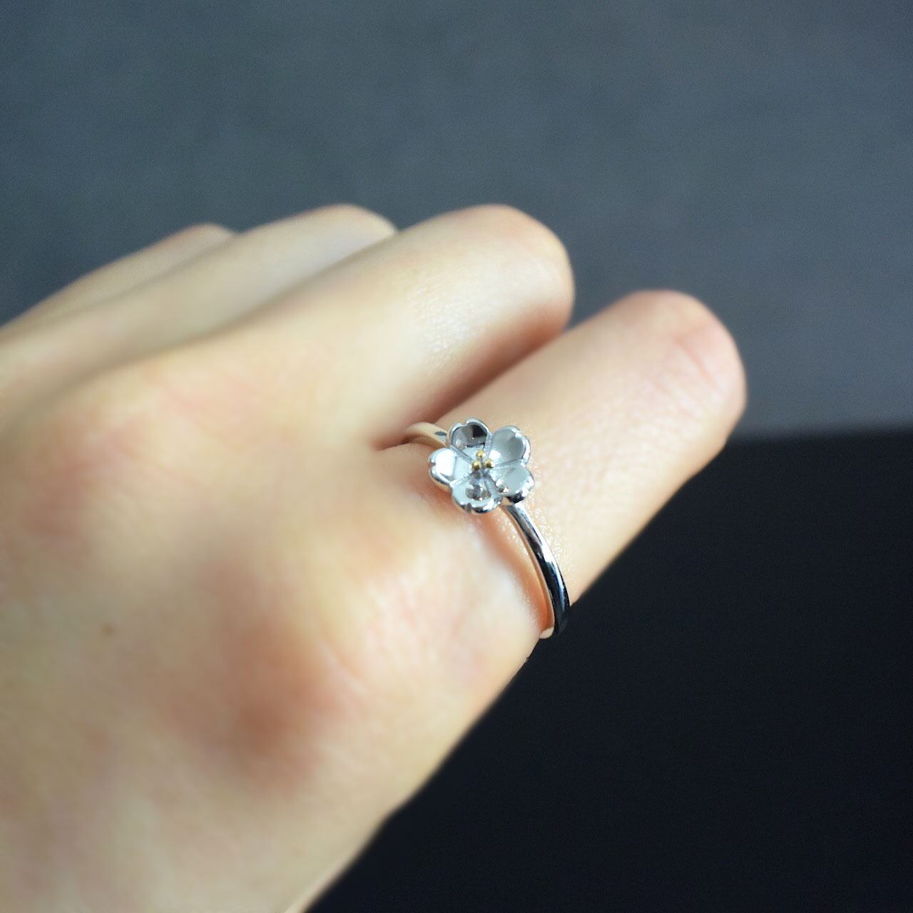 シンプルな桜のモチーフで作った、可憐で華奢なリングです。