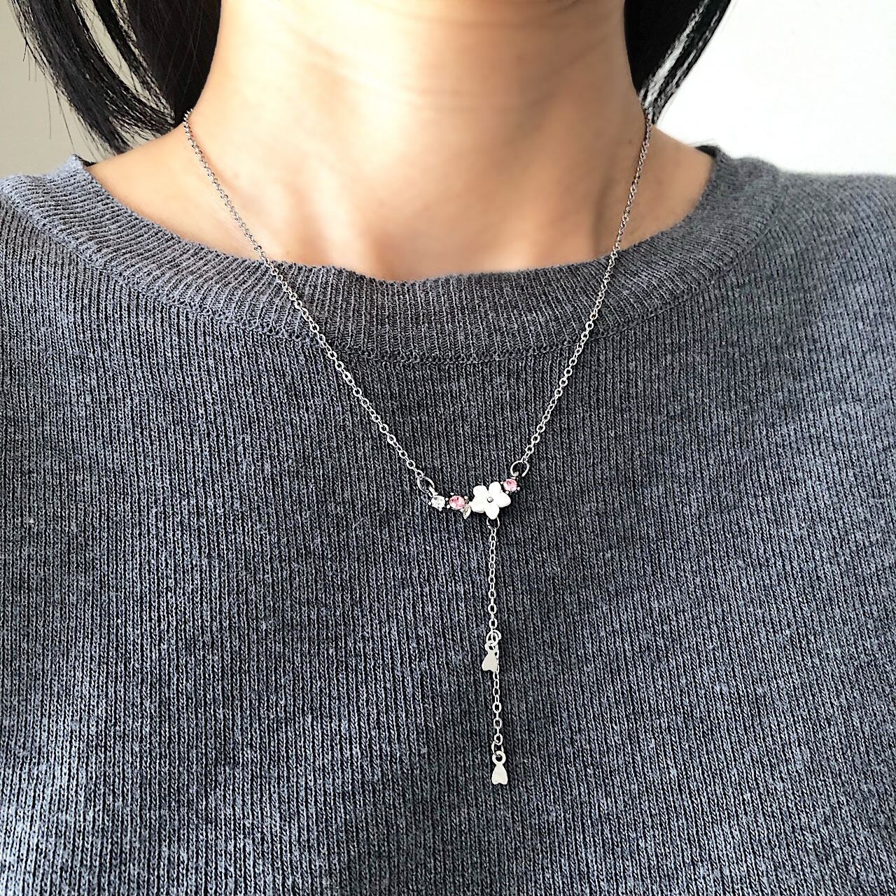白い花のモチーフとピンクジルコニアのモチーフから、花びらがはらはらと舞い散る桜をイメージしたネックレスです。