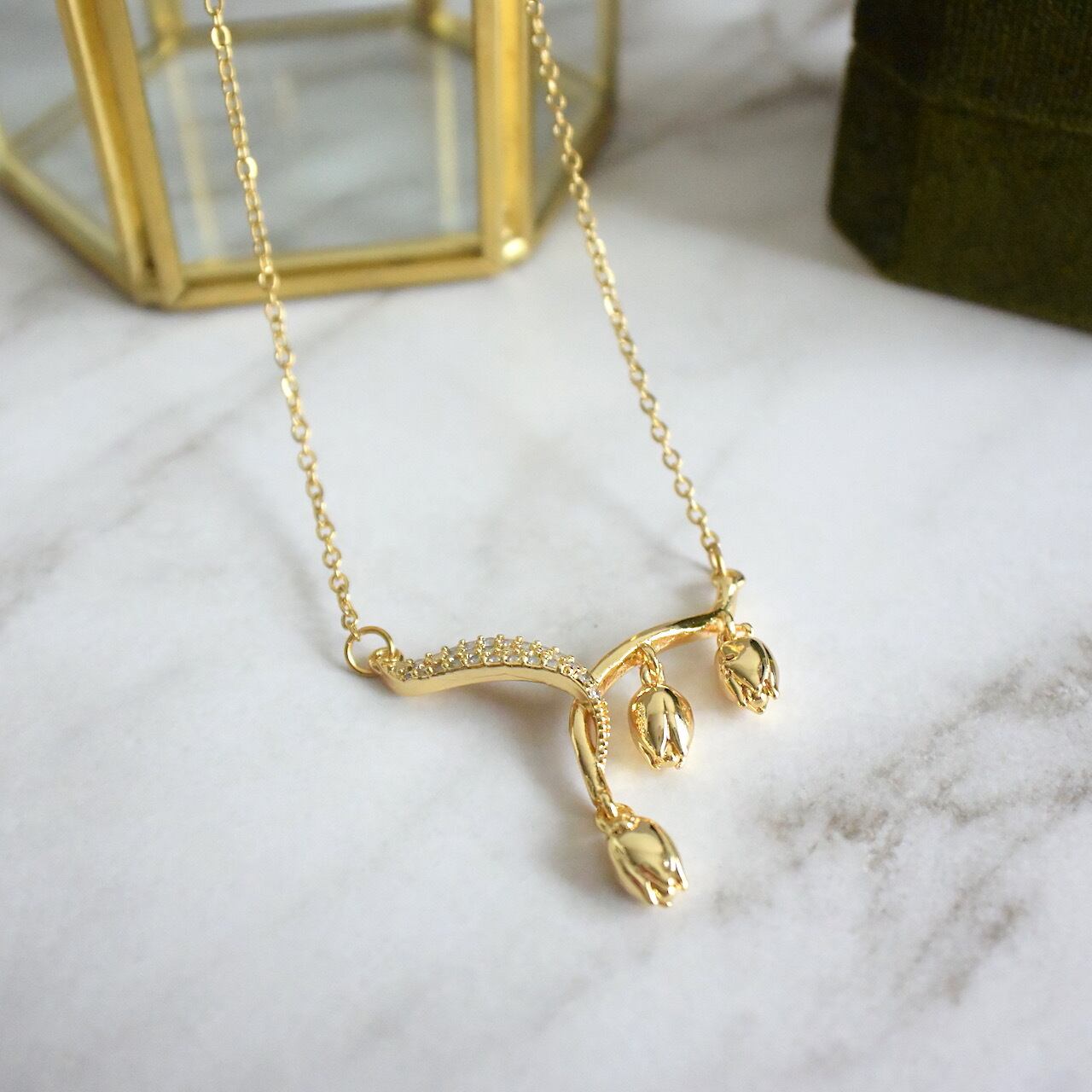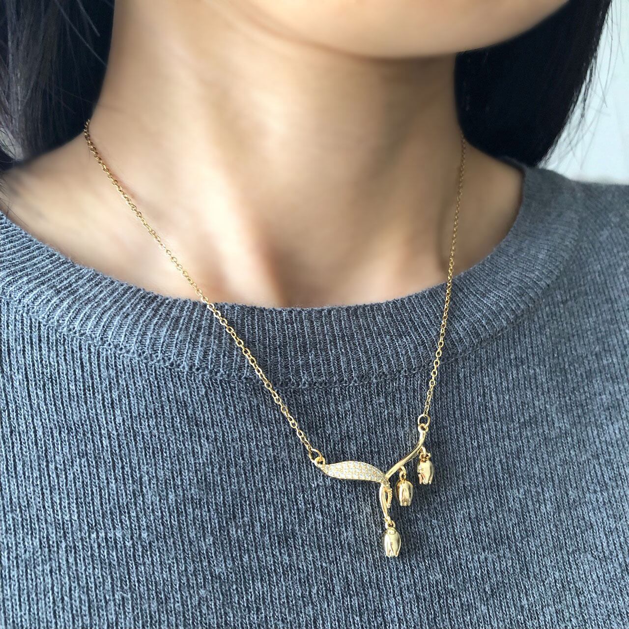 すずらんの可憐な草花をかたどった、上品な雰囲気のネックレスです。