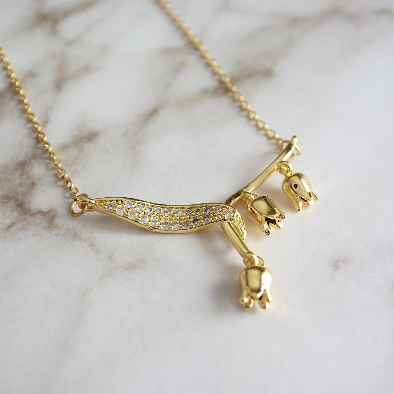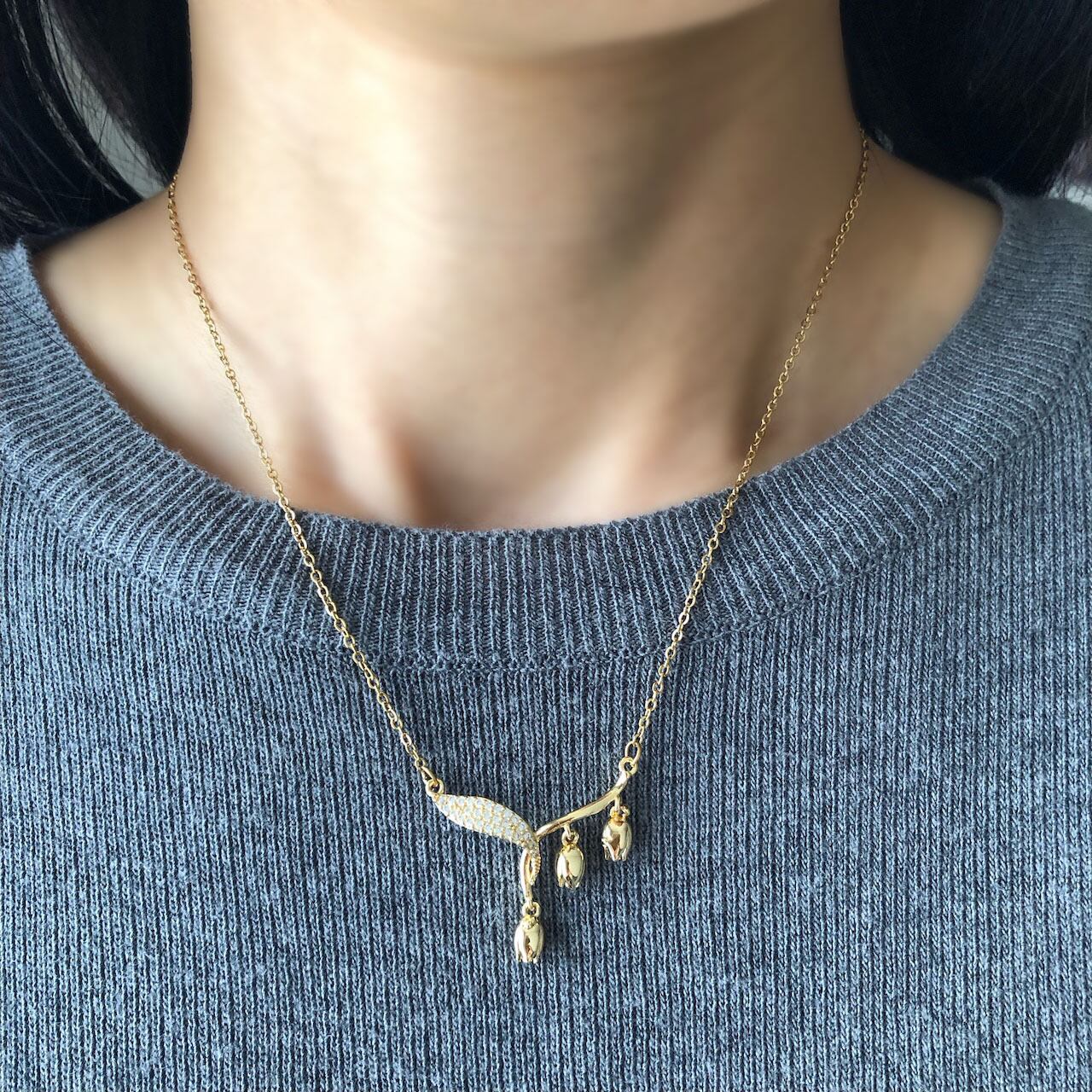 ゆらゆら揺れるすずらんのネックレス ステンレス製 ゴールド