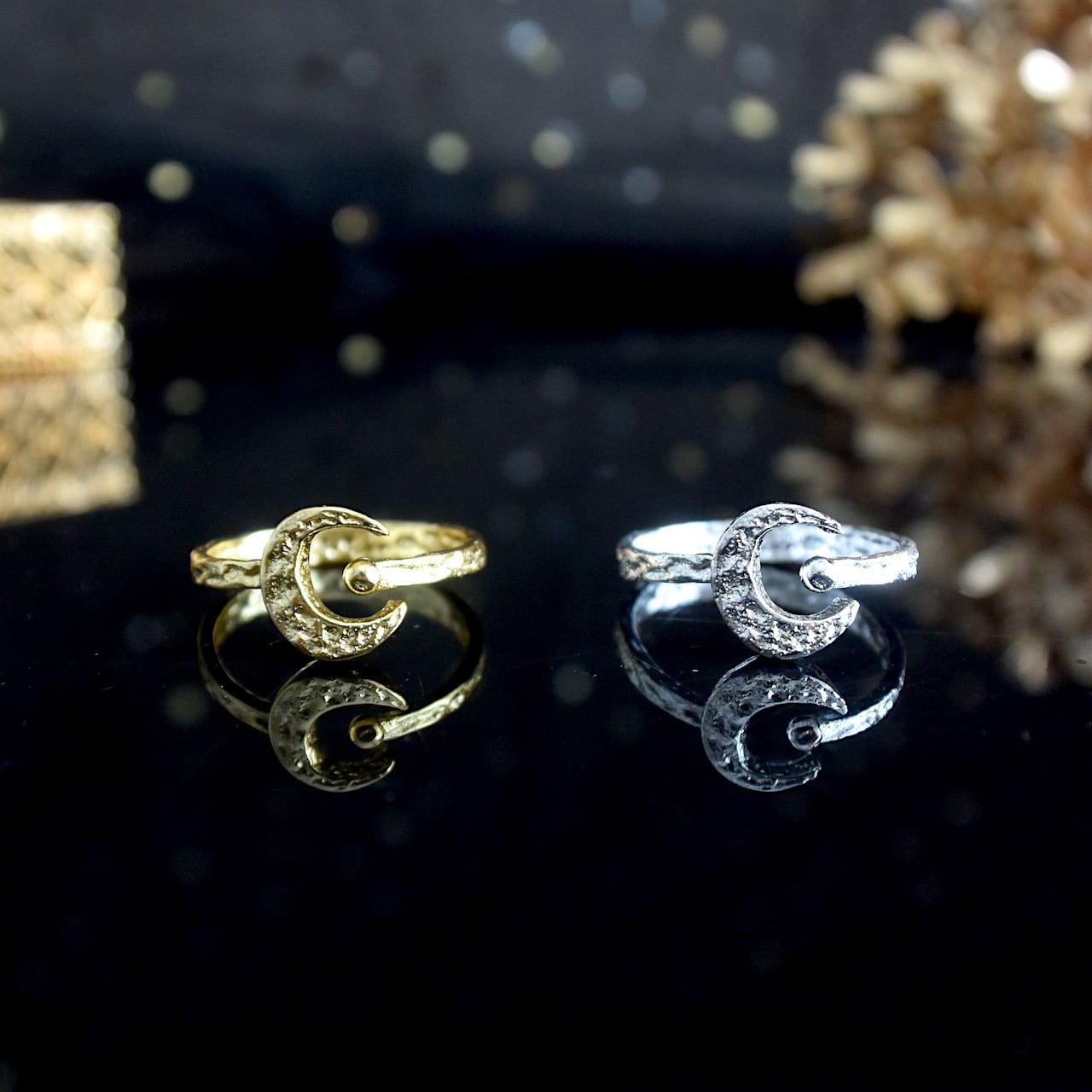 【Aimer le soi】Silver925 三日月の槌目フォークリング 調整可能 ゴールド/シルバー