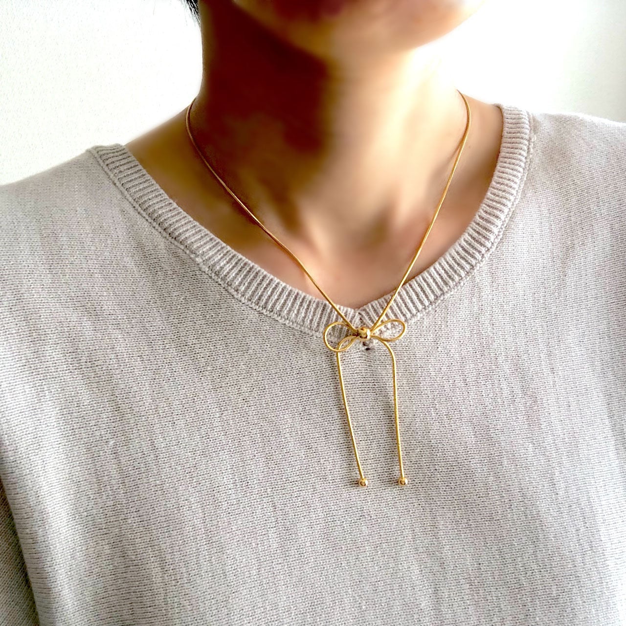 トレンドのリボンモチーフを、スネークチェーンのネックレスにした大人可愛いアイテム。
