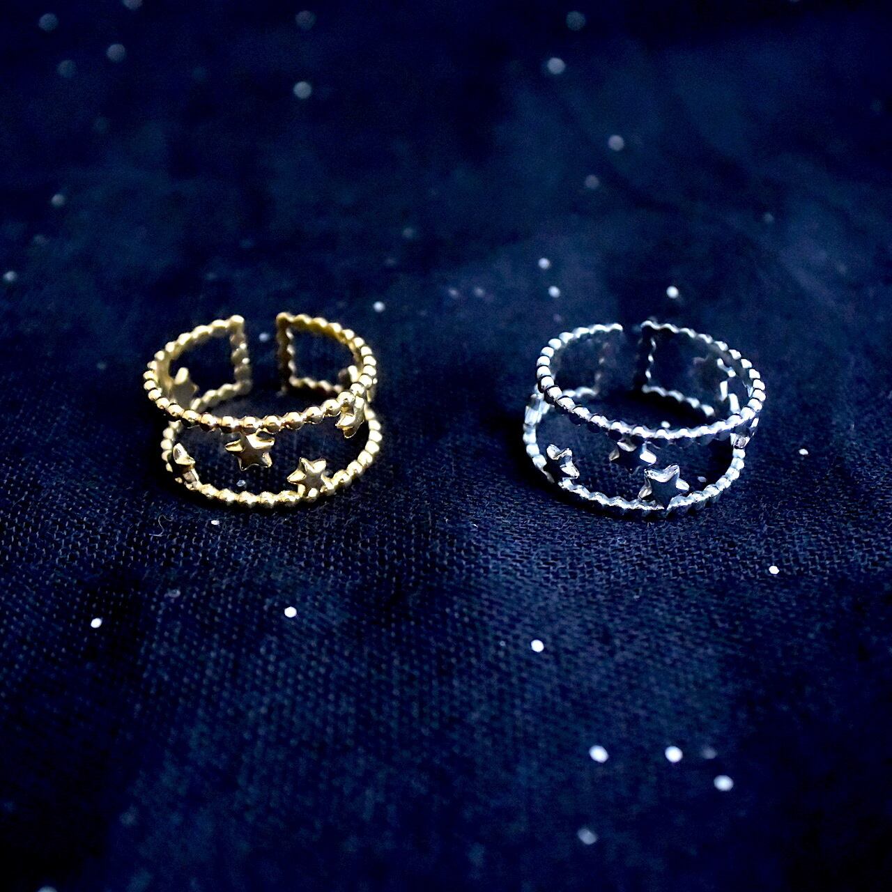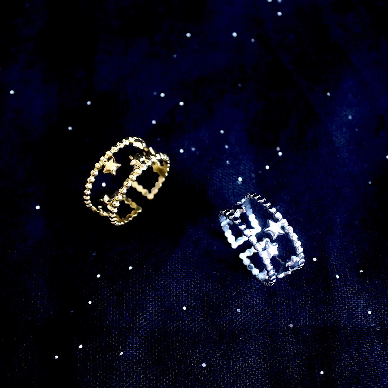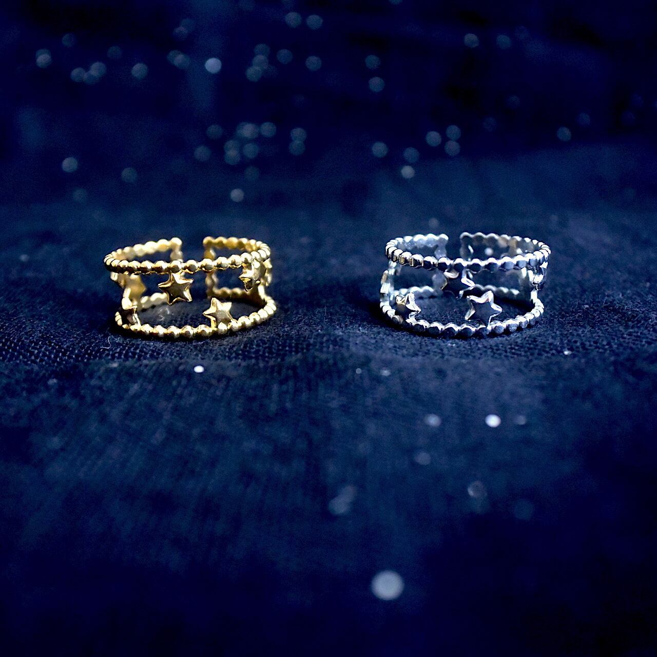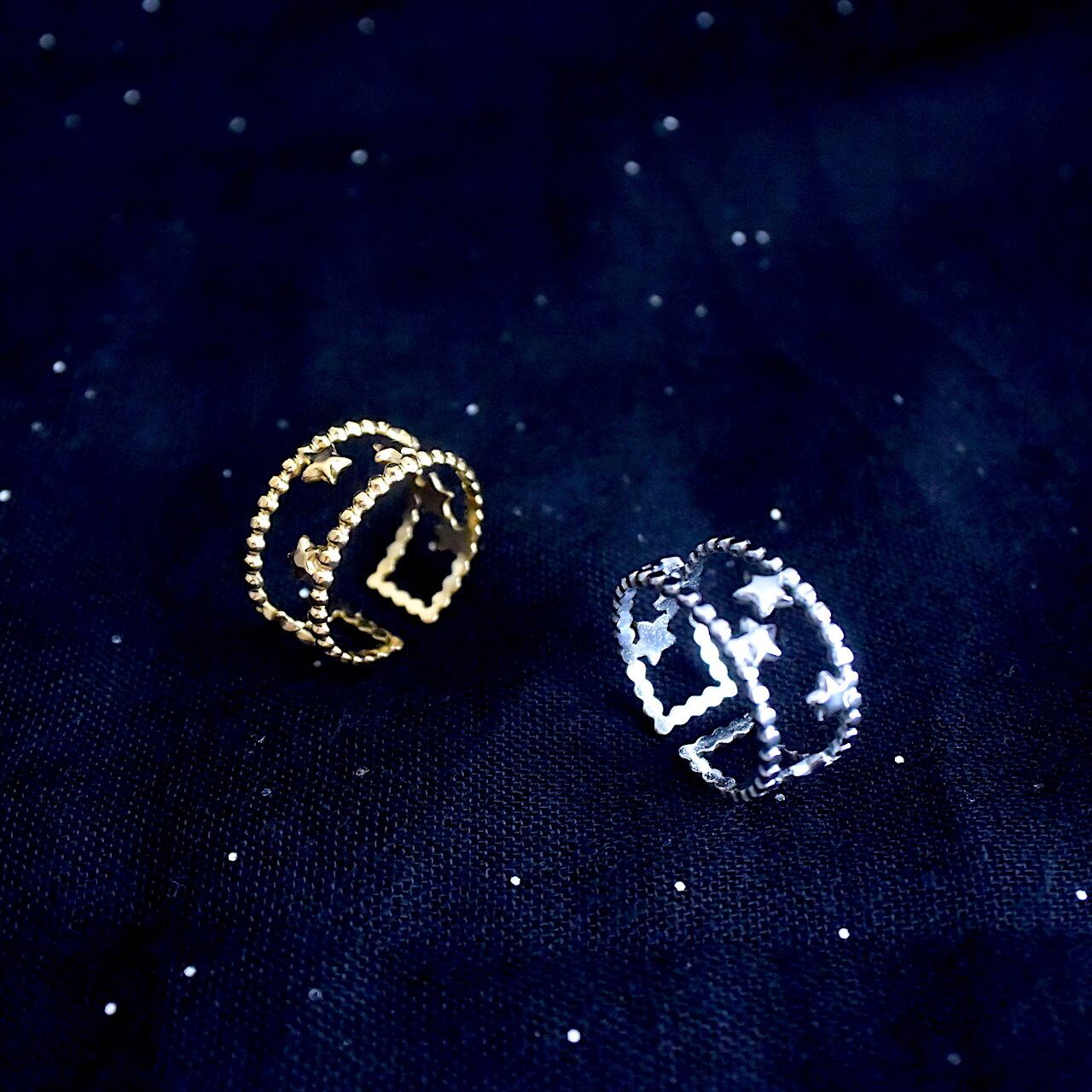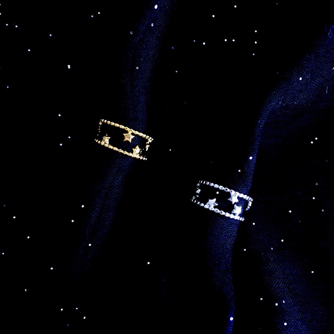 【Aimer le soi】Milky Way 星屑のステンレスリング 調整可能 ゴールド/シルバー