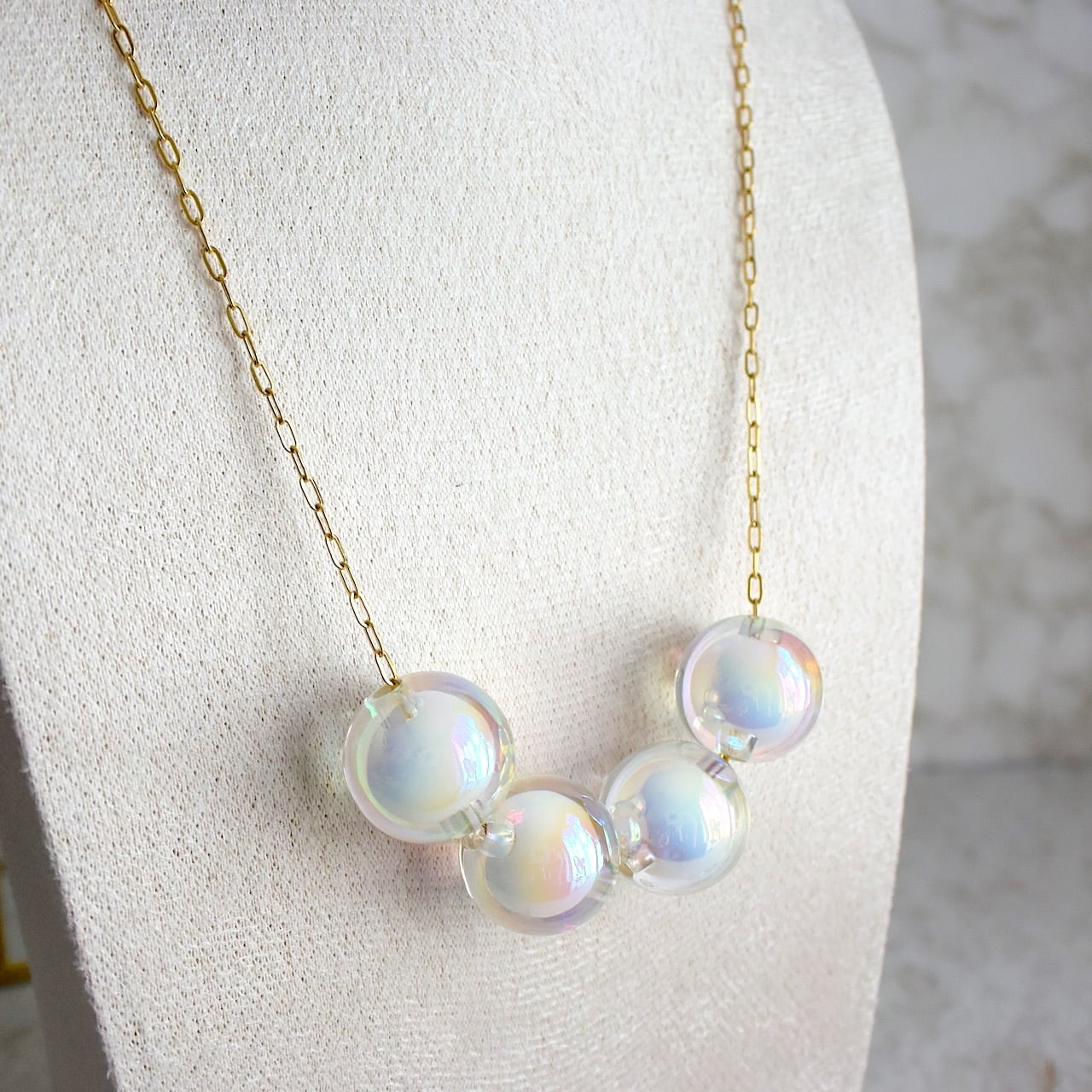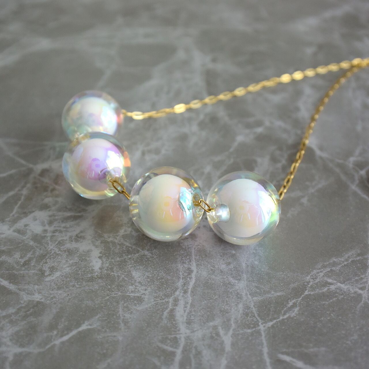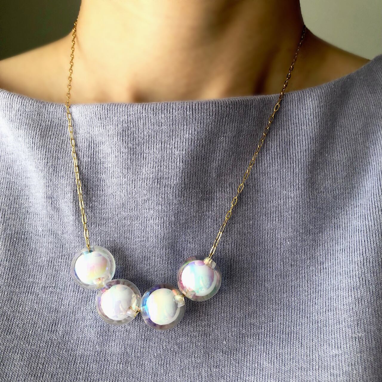シャボン玉のような、オーロラカラーの大きなビーズをシンプルなネックレスにしました。
