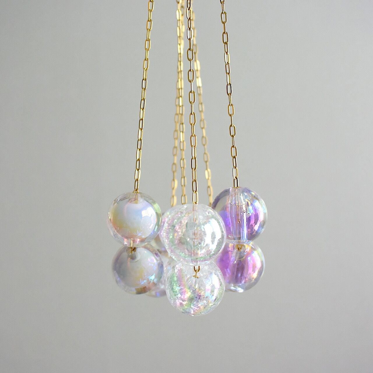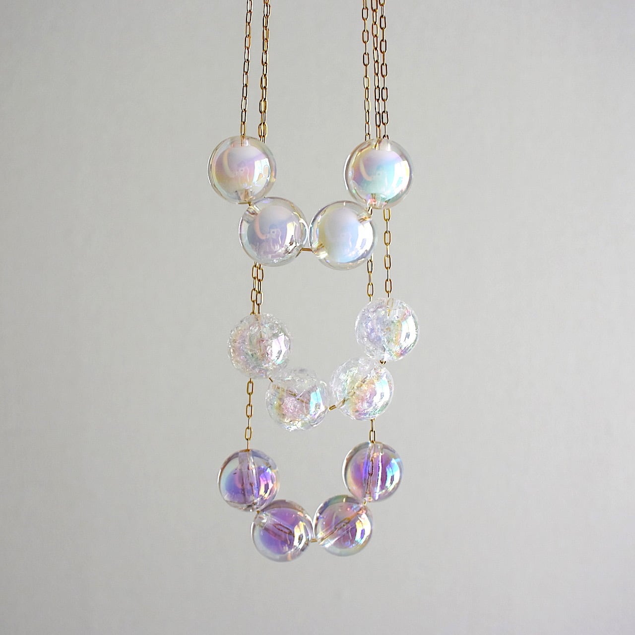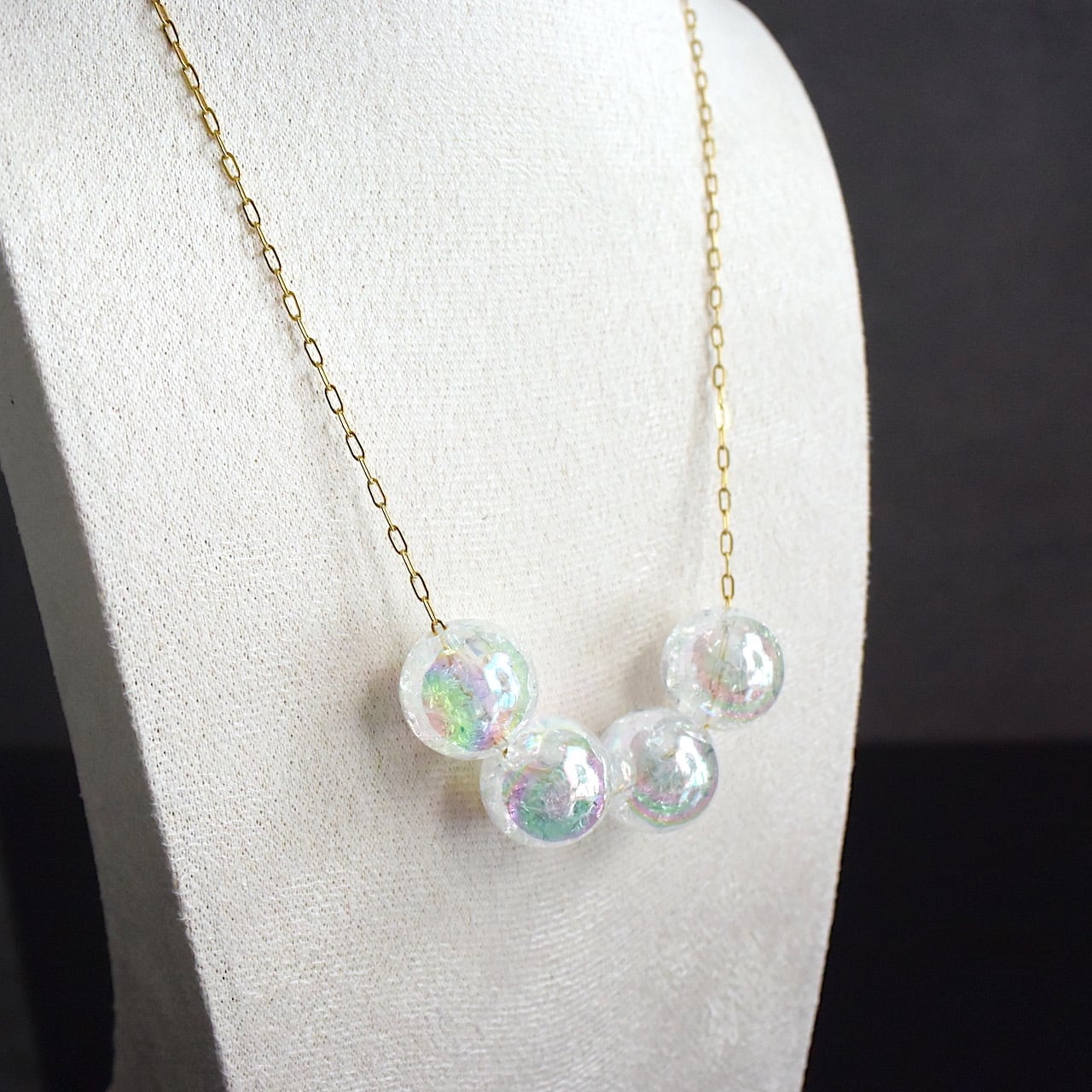 シャボン玉のような、オーロラカラーの大きなビーズをシンプルなネックレスにしました。