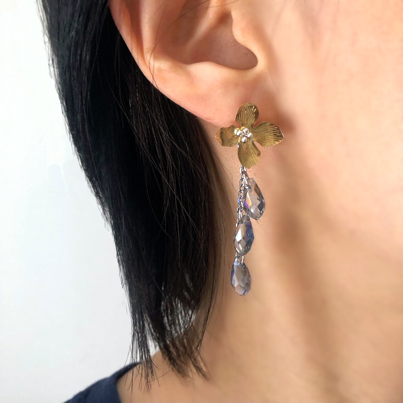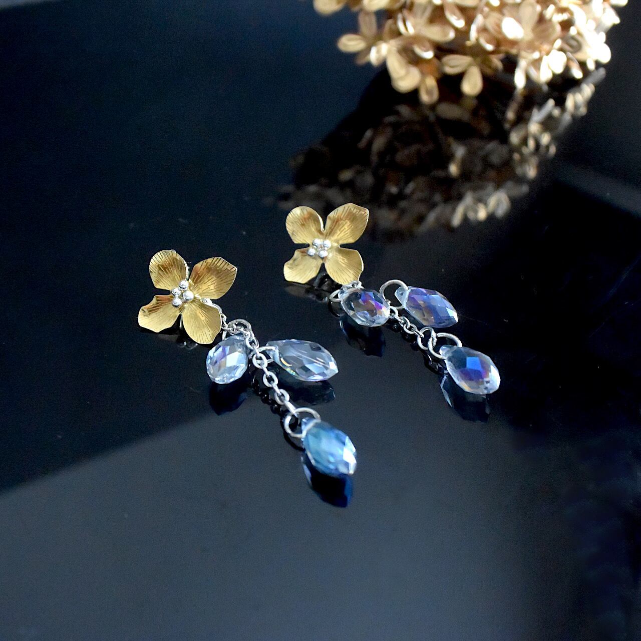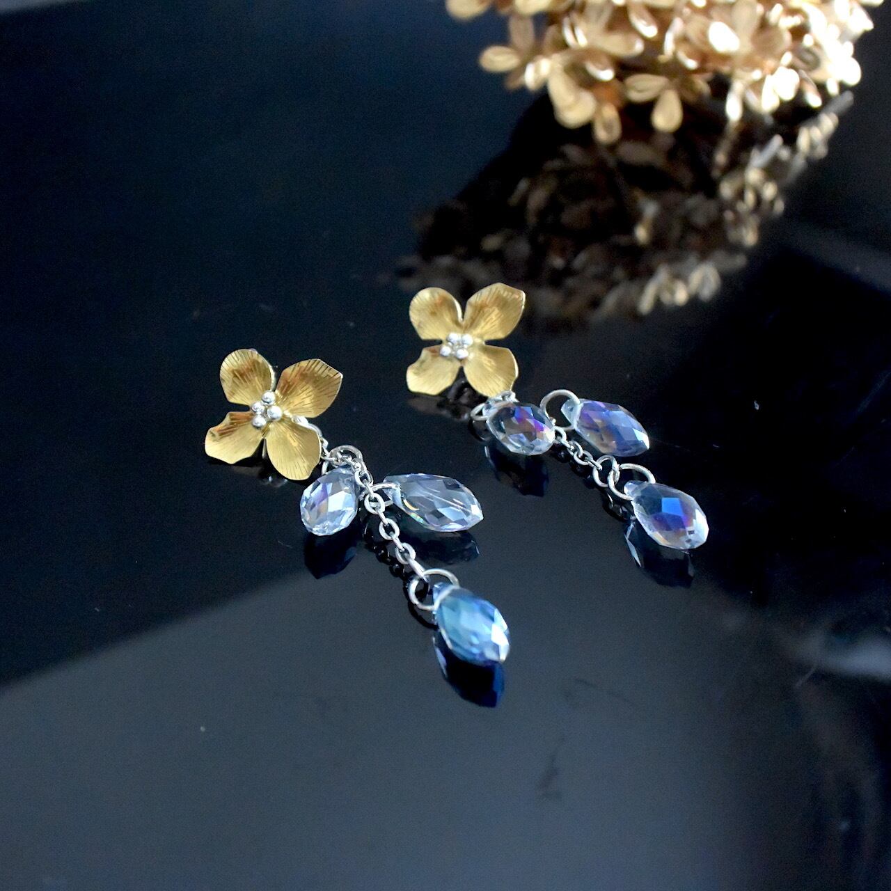ガクアジサイの雨垂れピアス ステンレス金具 コンビカラー