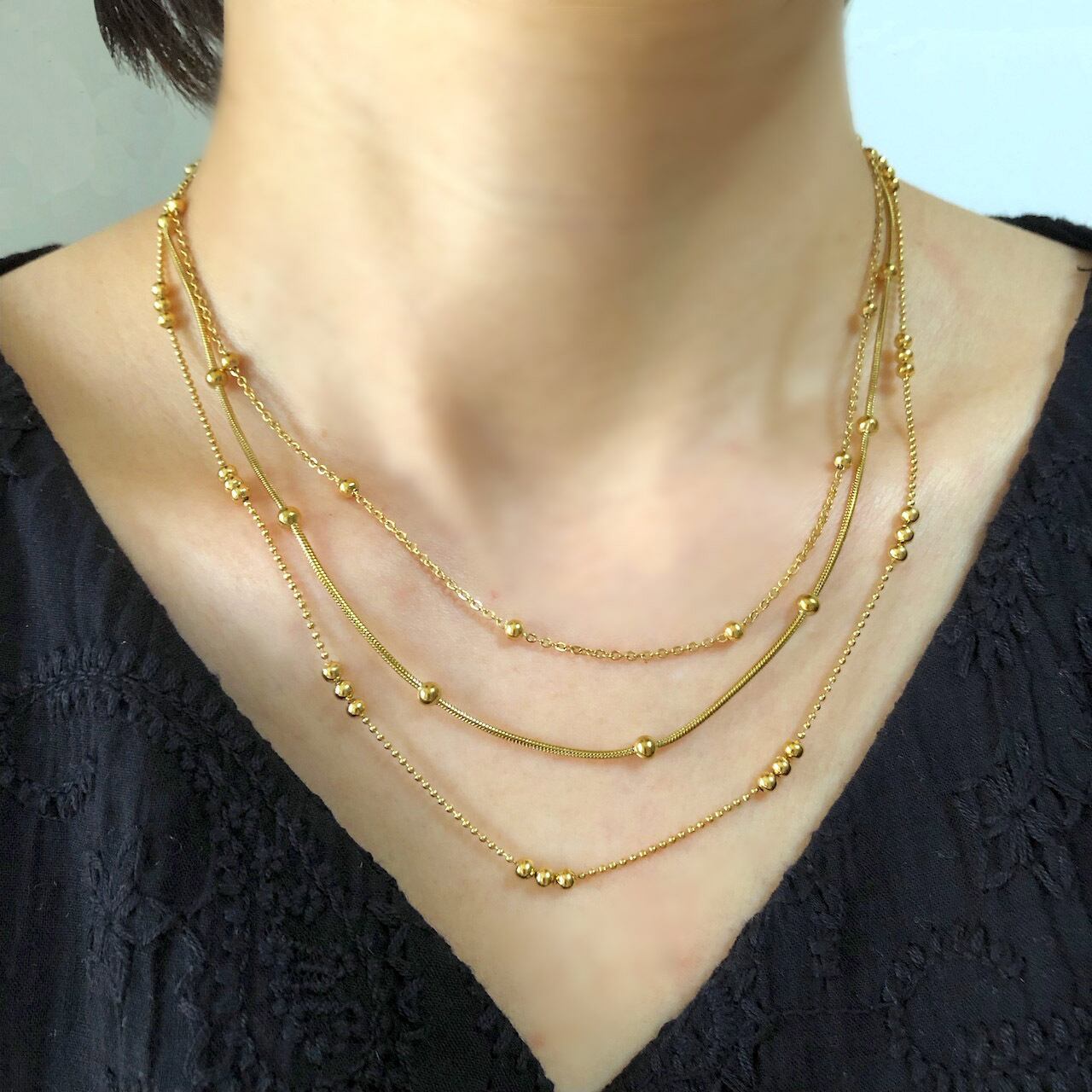ボールチェーンのステーションネックレス ステンレスチェーン ゴールド