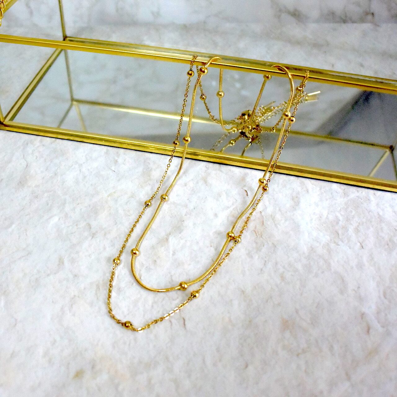 重ね付けに☆2タイプチェーンのステーションネックレスセット ステンレスチェーン ゴールド