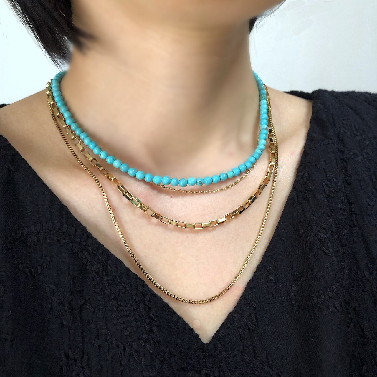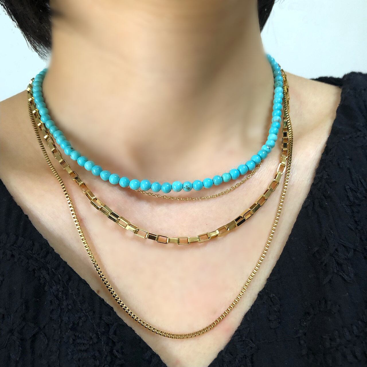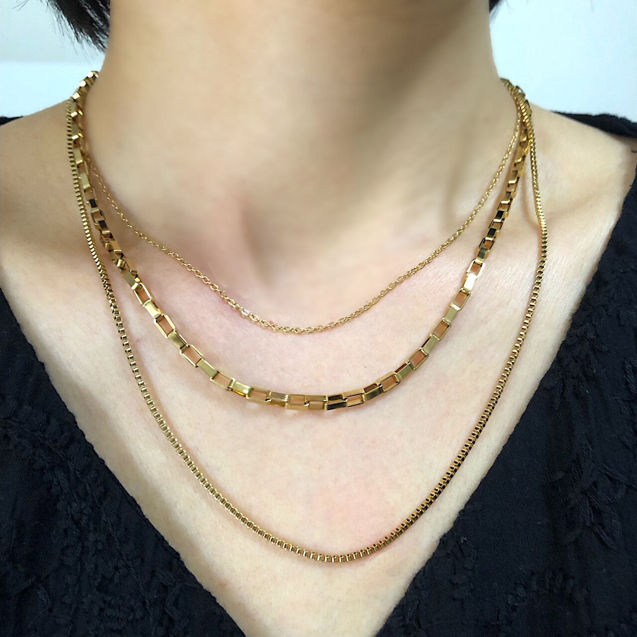 3連ボックスチェーンのレイヤードネックレス ステンレス ゴールド