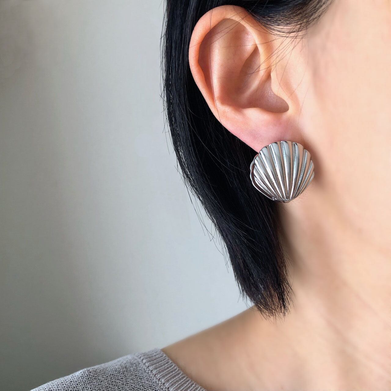 耳たぶを貝殻で挟むような、斬新なデザインでインパクト抜群!