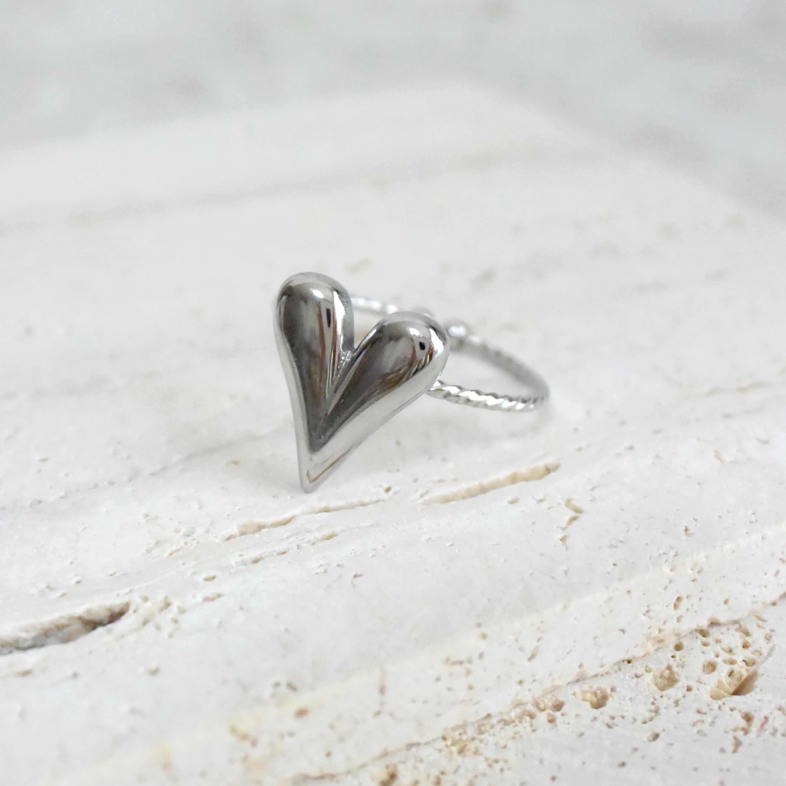 トレンドのぷっくりとしたハートのリングです。