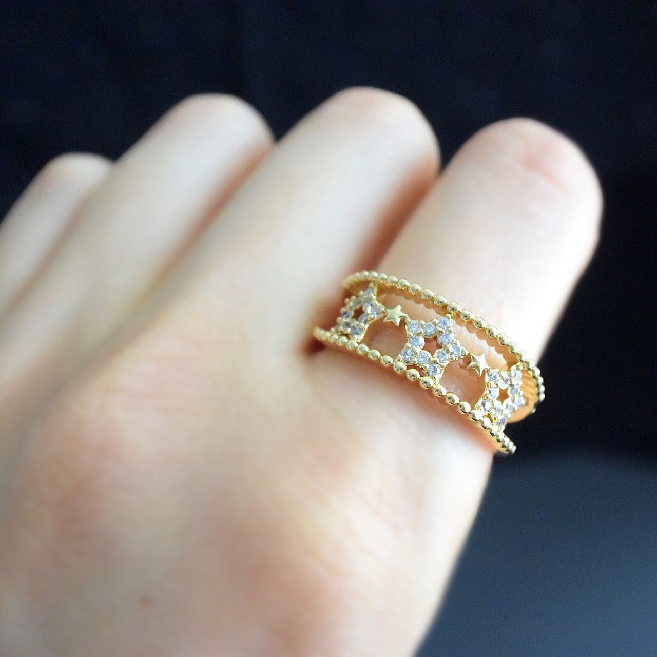 18K本金メッキとキュービックジルコニアを使用した、本物の夜空のような煌めきのスタイリッシュなデザイン。