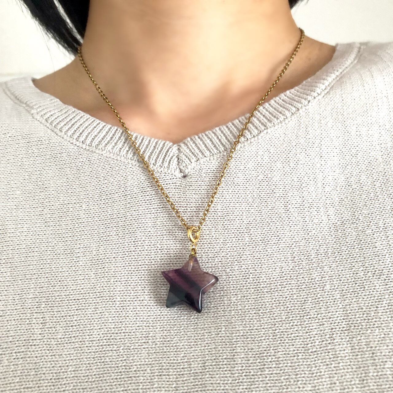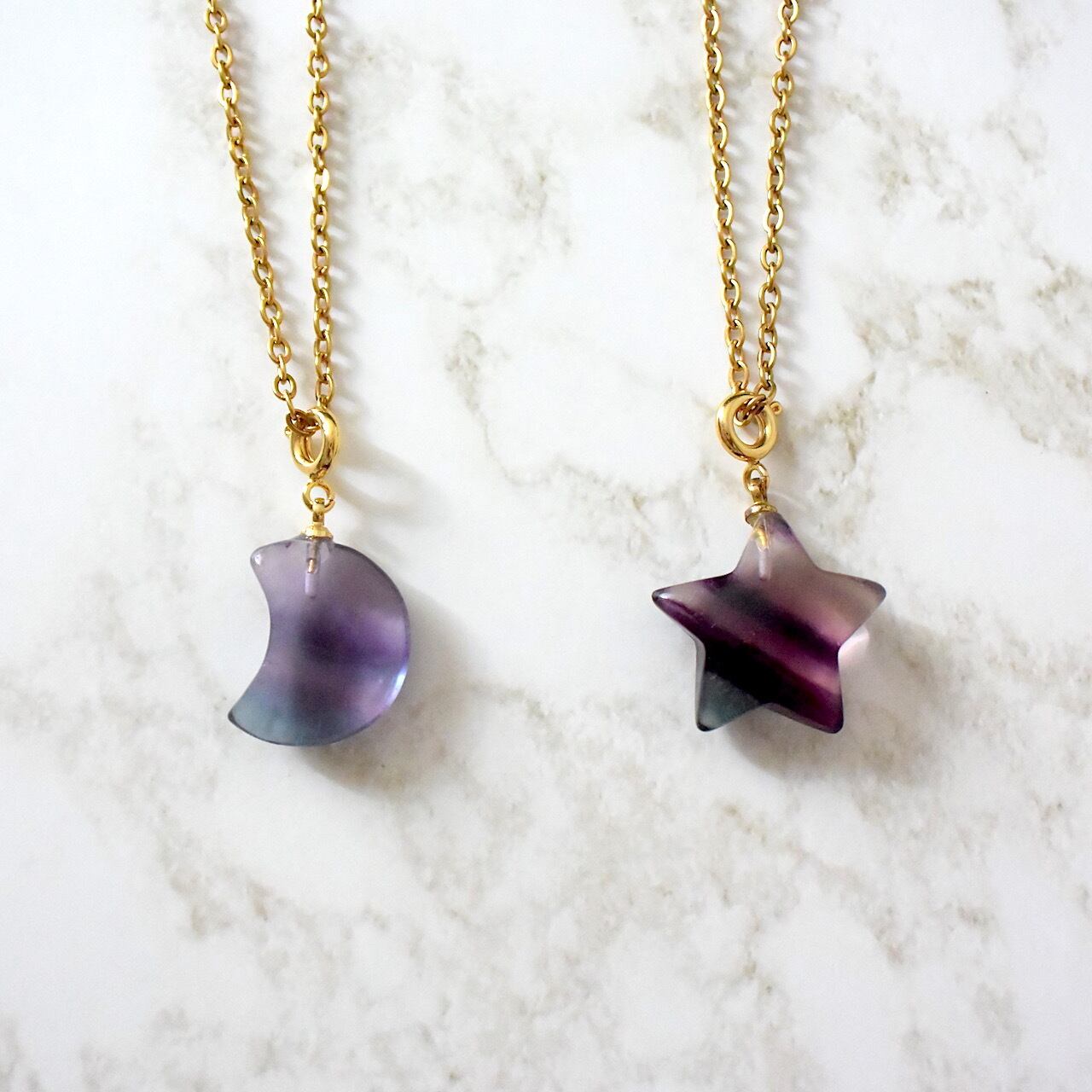 石が選べる フローライトの星ネックレス 蛍星夜 ステンレスチェーン