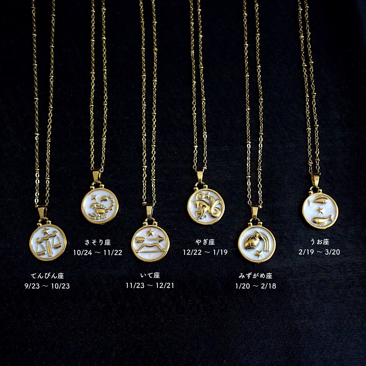 全種再販!12星座のコインネックレス ステーションチェーン エナメルホワイト