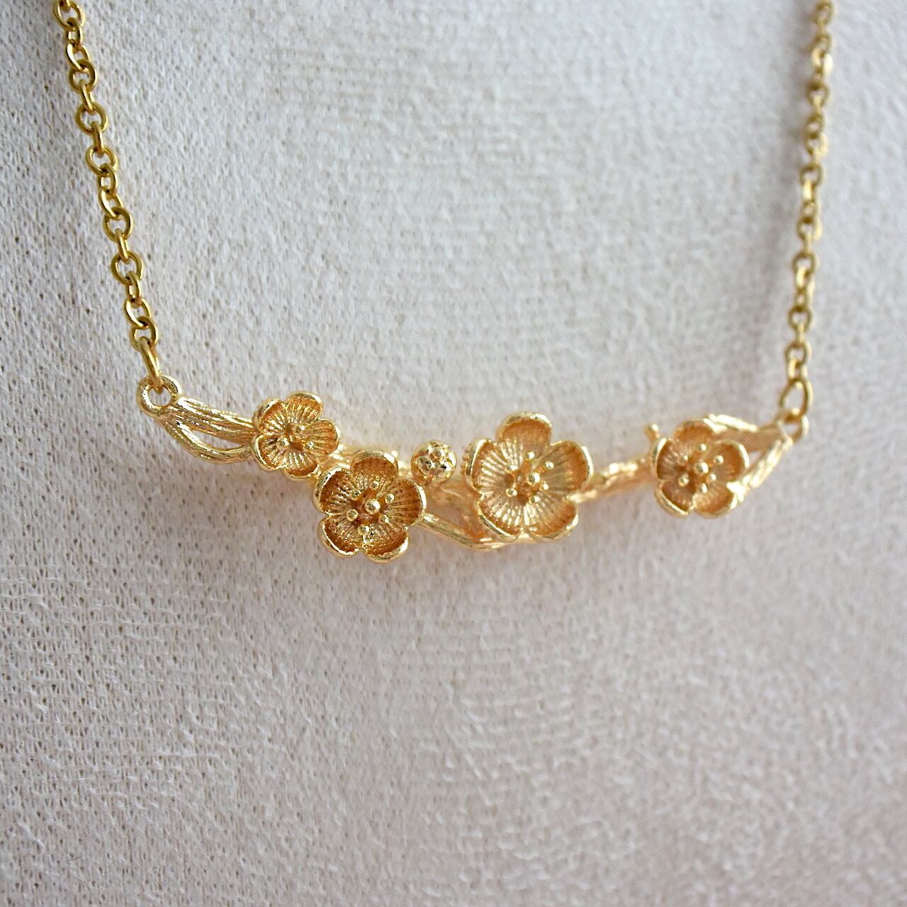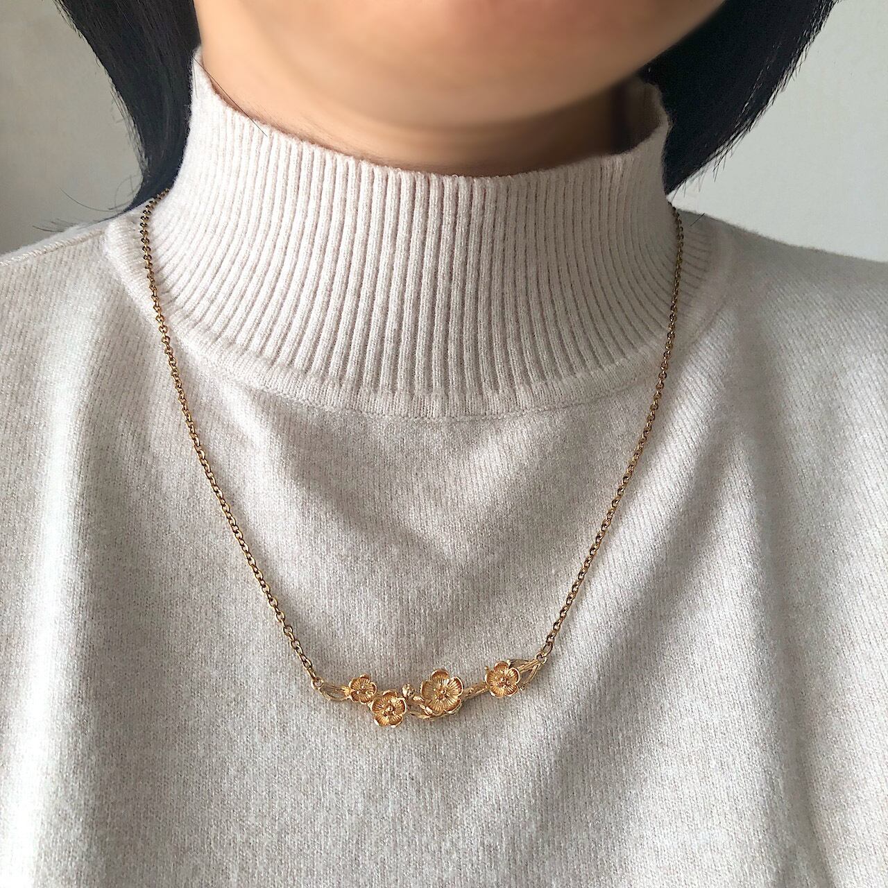 梅の花とその枝を忠実に再現した、季節を感じるネックレスです。